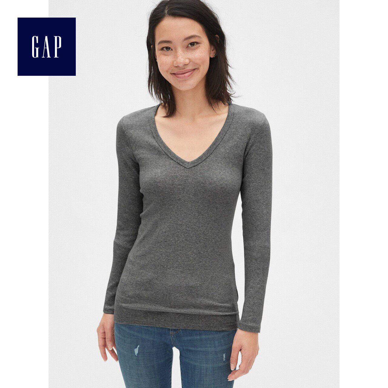 Gap Комфортный лонгслив для отдыха, V-образный вырез, высокий воротник