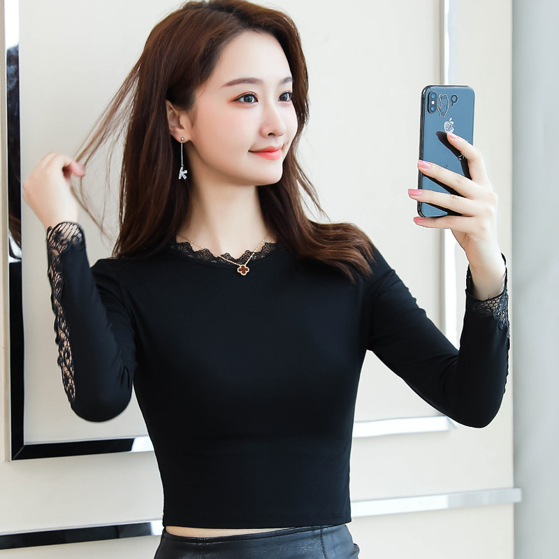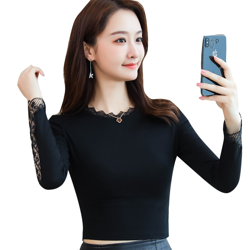 Базовый приятный телу осенний короткий сексуальный шелковый лонгслив, в западном стиле