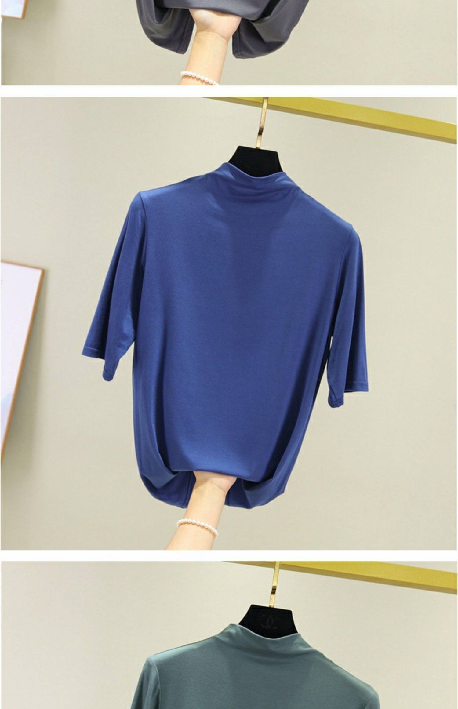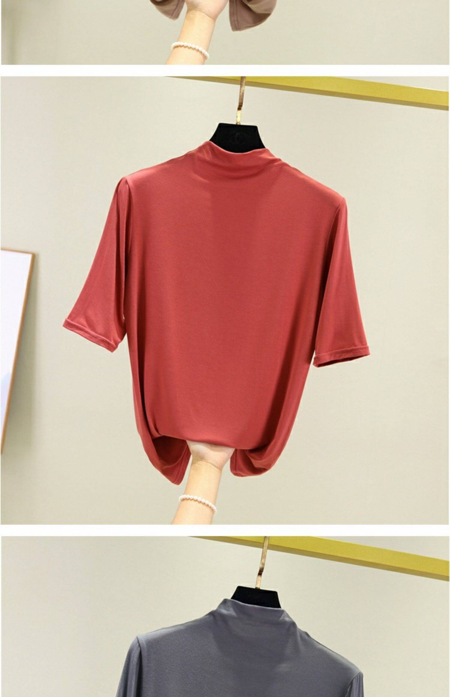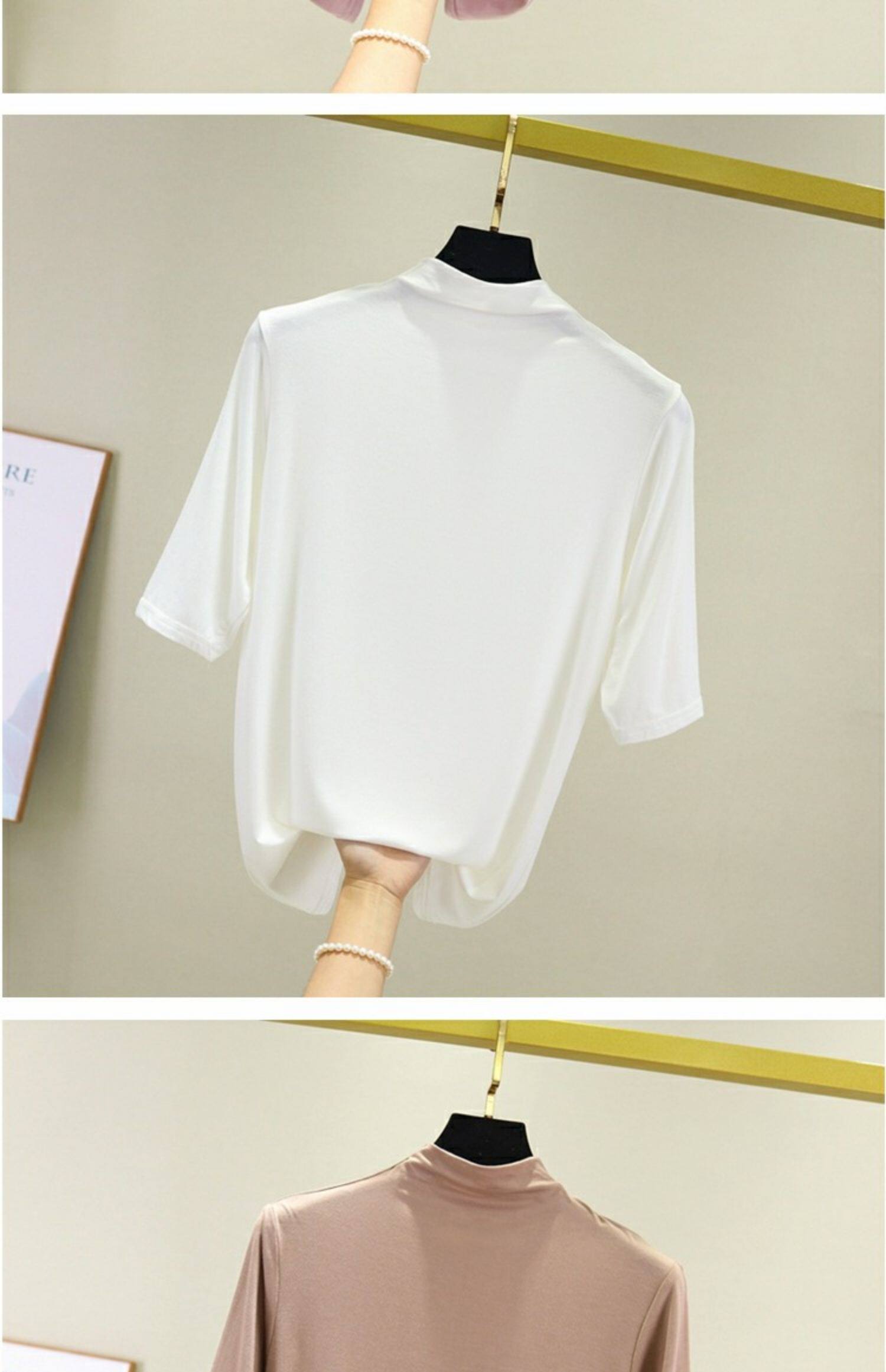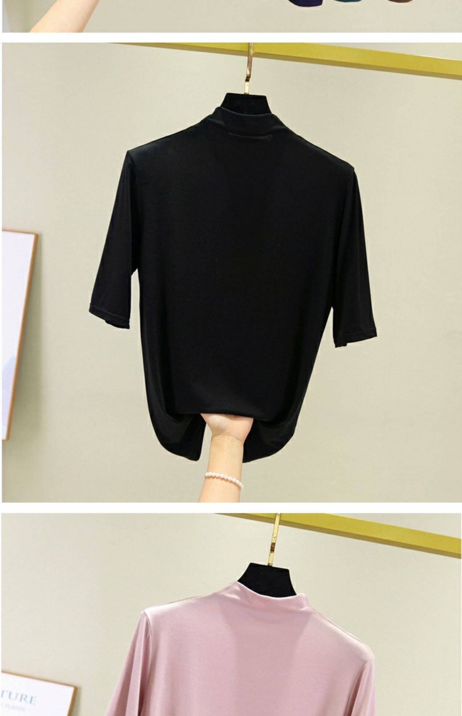Цветная базовая приятная телу тонкая шелковая футболка, высокий воротник, облегающий крой