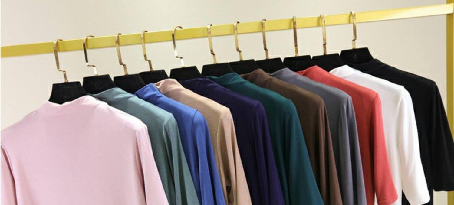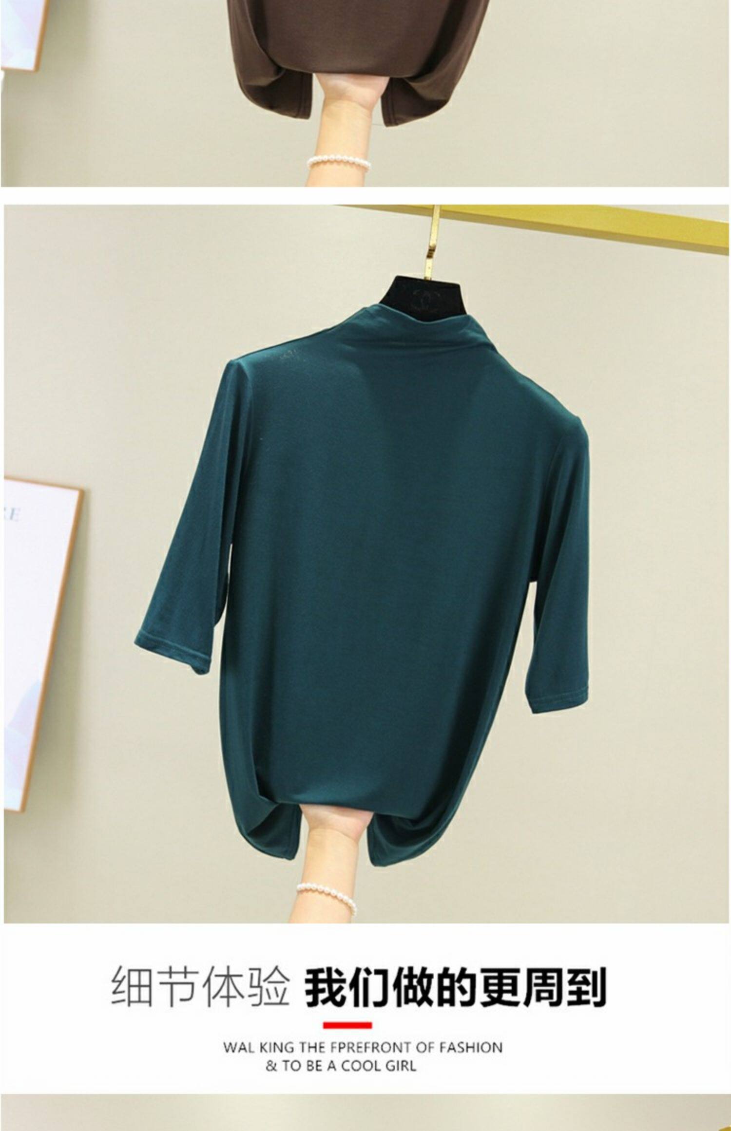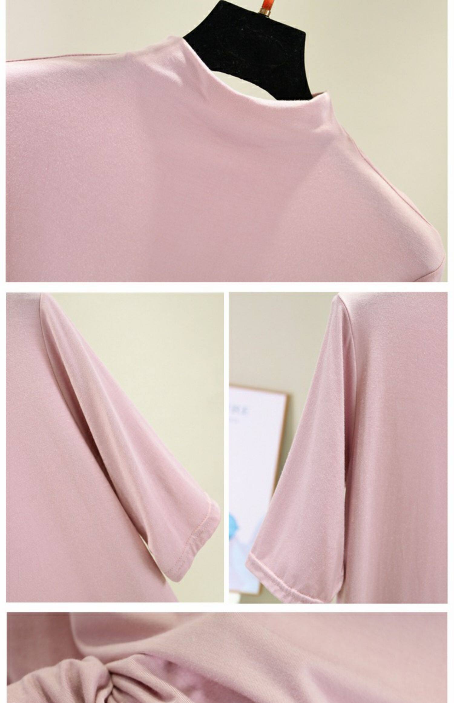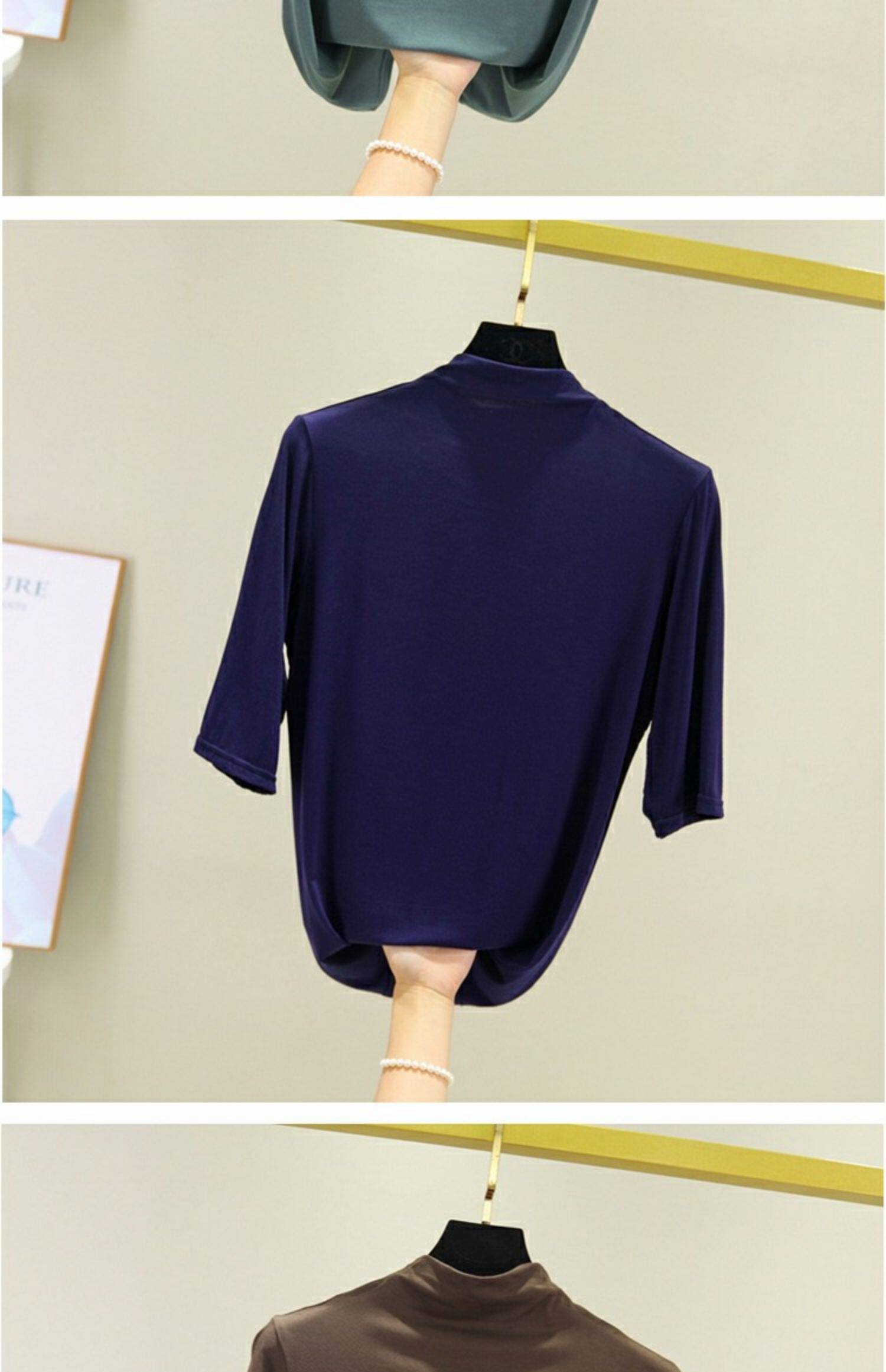 Цветная базовая приятная телу тонкая шелковая футболка, высокий воротник, облегающий крой