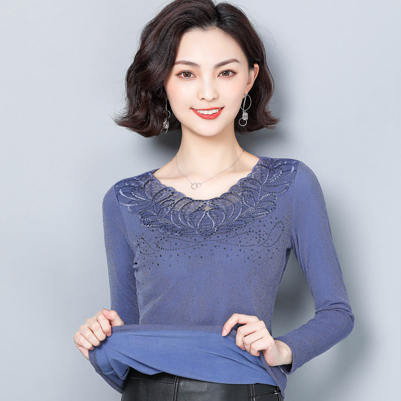 Кружевной базовый приятный телу демисезонный утепленный лонгслив, футболка
