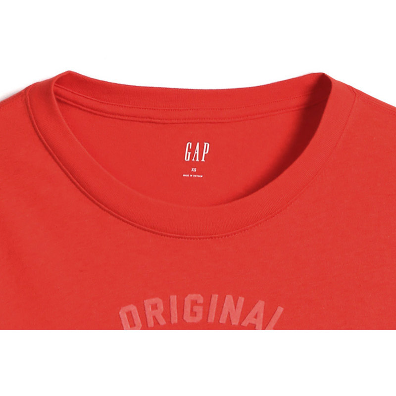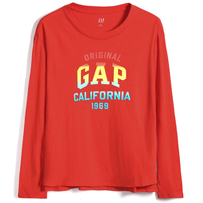 Gap Базовый красный хлопковый лонгслив с круглым воротником для отдыха, с печатью вашего логотипа