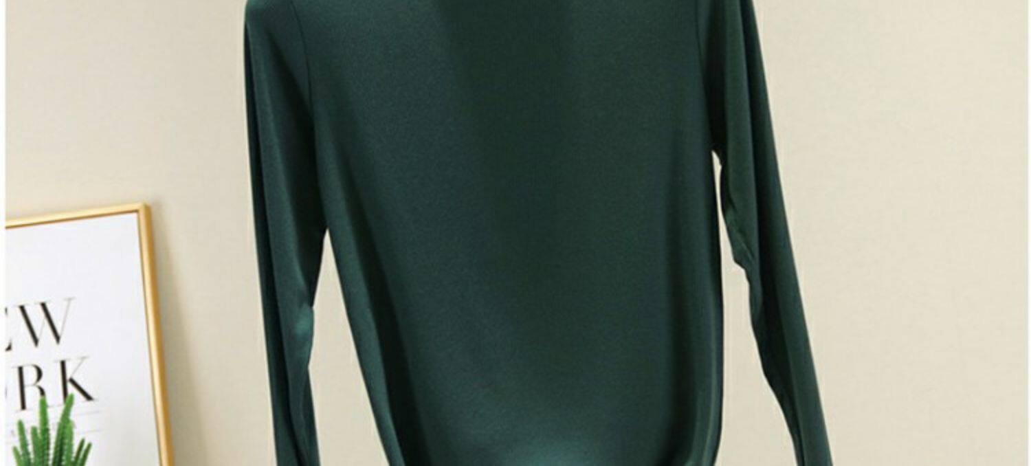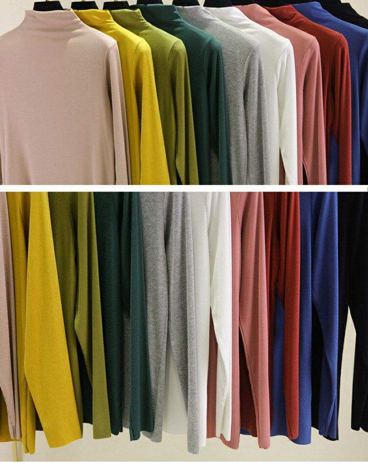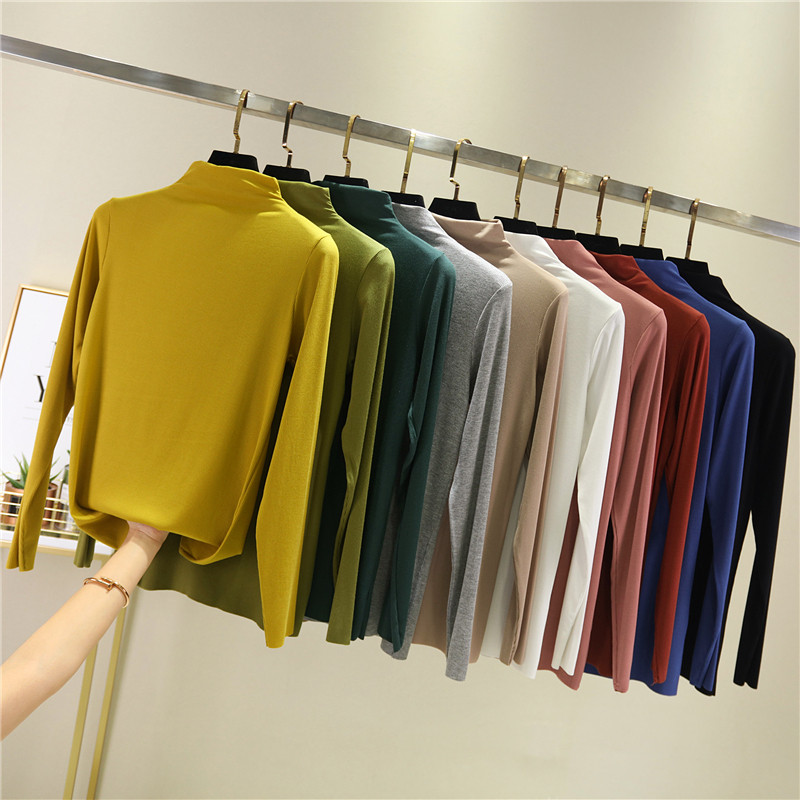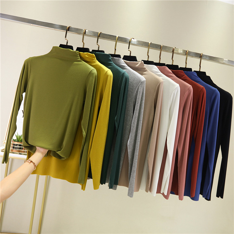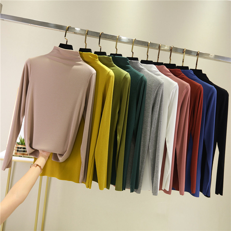 Осенний приталенный базовый приятный телу тонкий лонгслив, высокий воротник