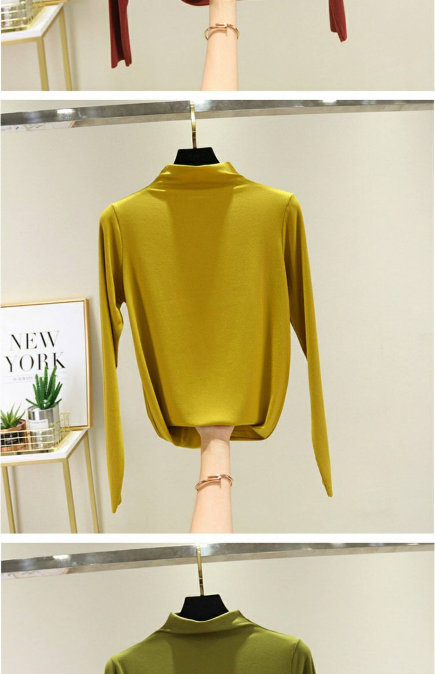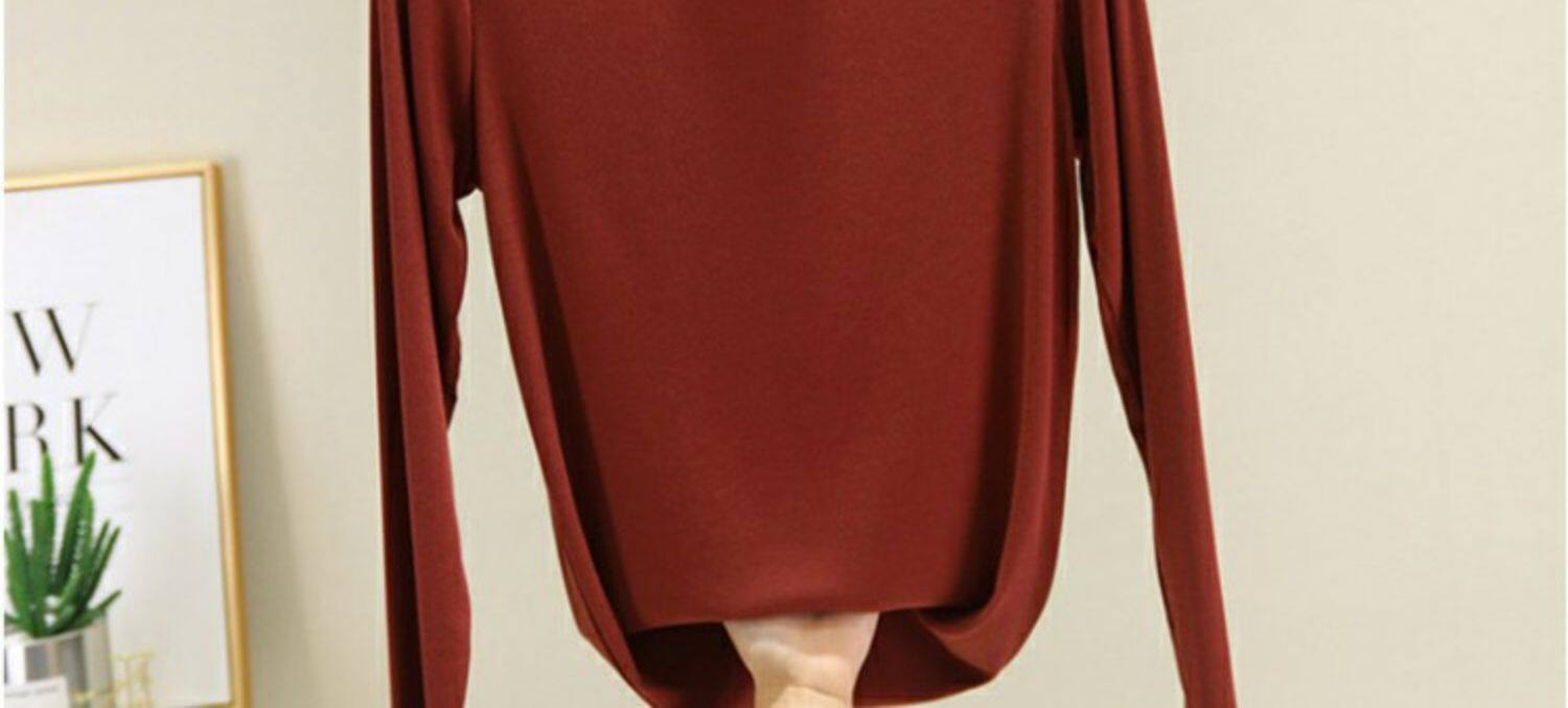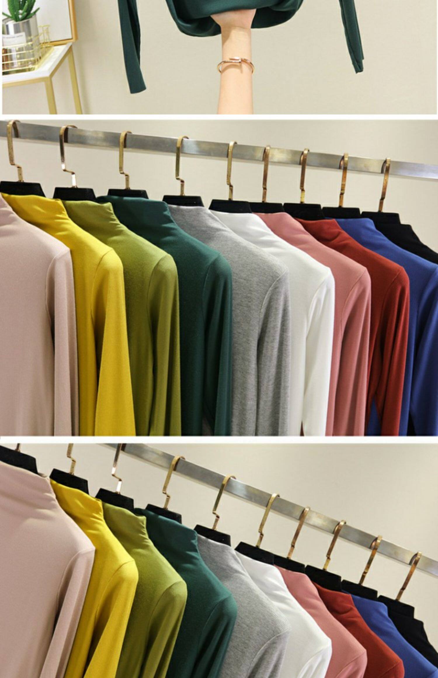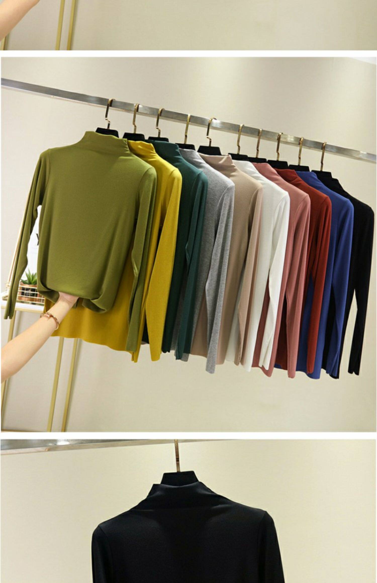Осенний приталенный базовый приятный телу тонкий лонгслив, высокий воротник