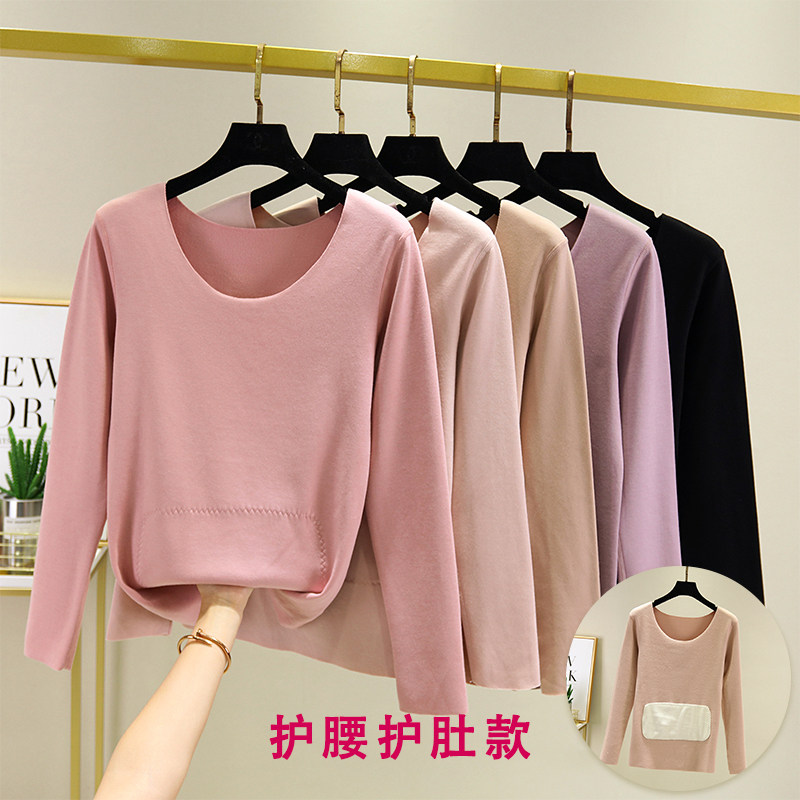 Утепленный базовый приятный телу удерживающий тепло бархатный лонгслив с круглым воротником, большой размер, увеличенная толщина