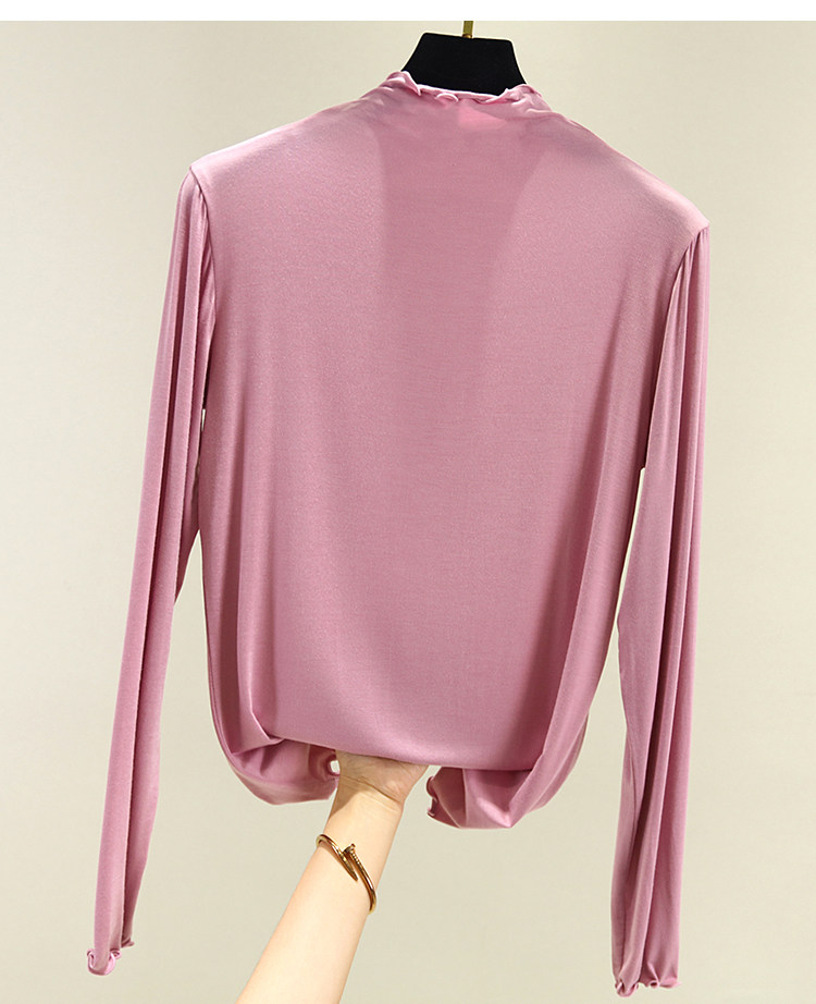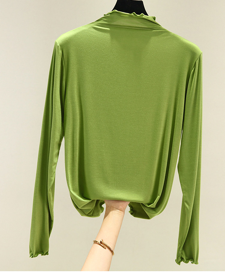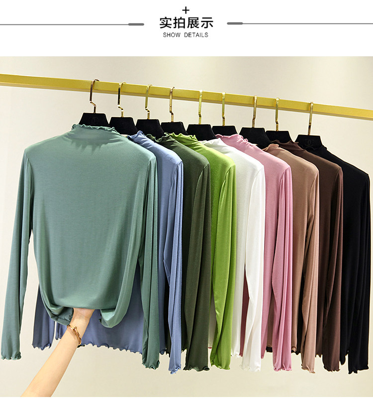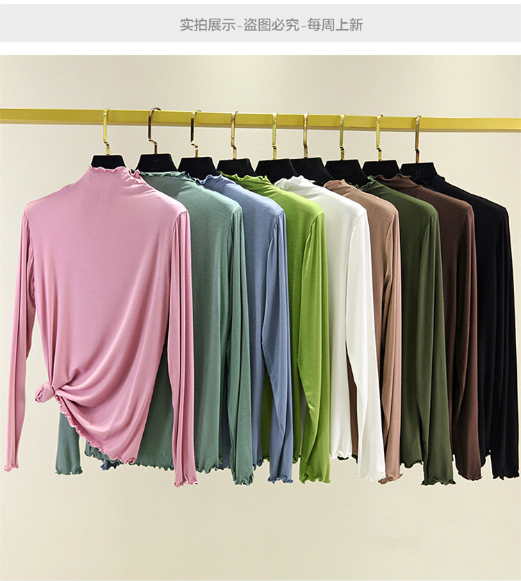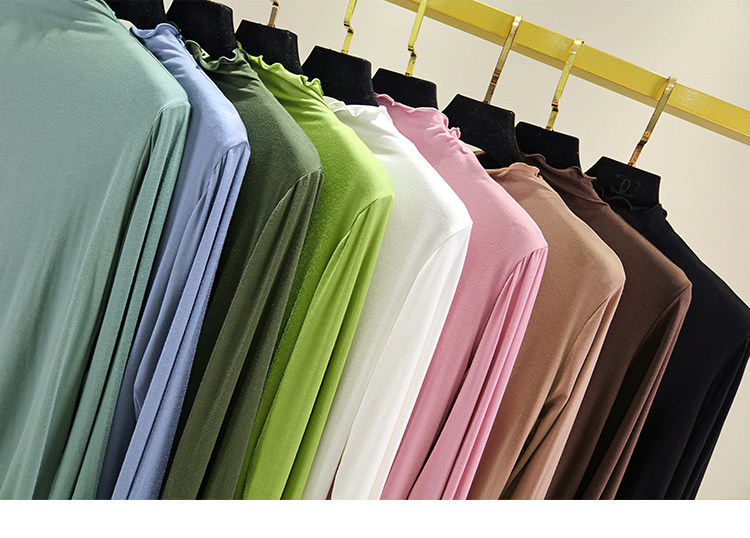 Цветной хлопковый лонгслив, осенний, высокий воротник, по фигуре, облегающий крой