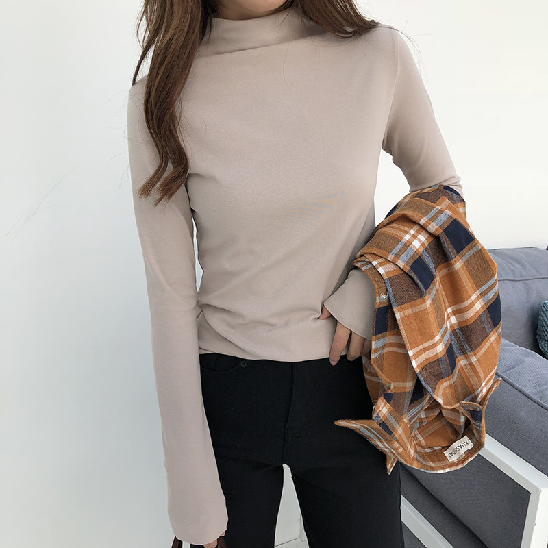 Базовый приятный телу демисезонный флисовый брендовый лонгслив, высокий воротник, коллекция 2022, в западном стиле, облегающий крой