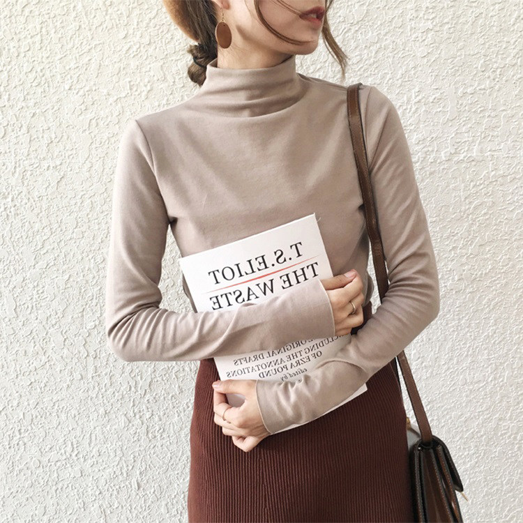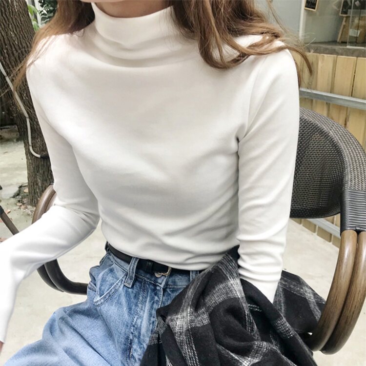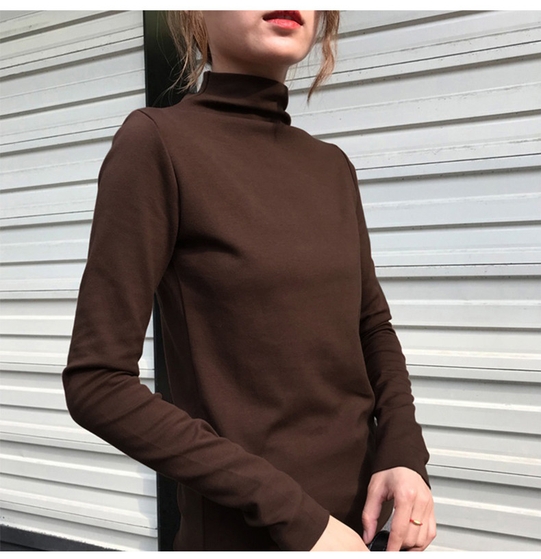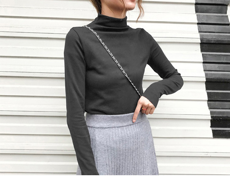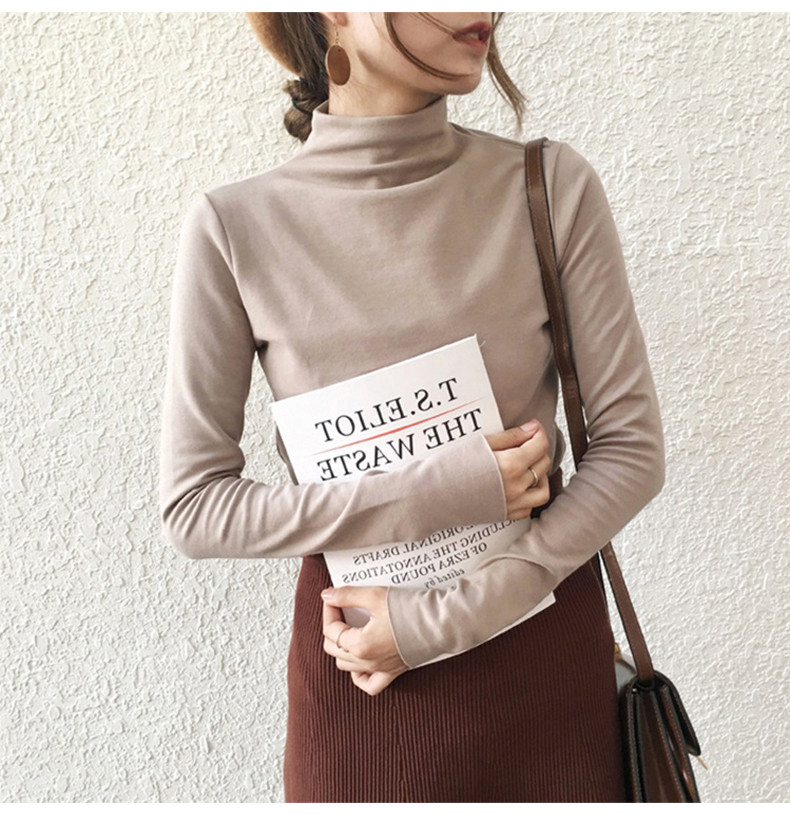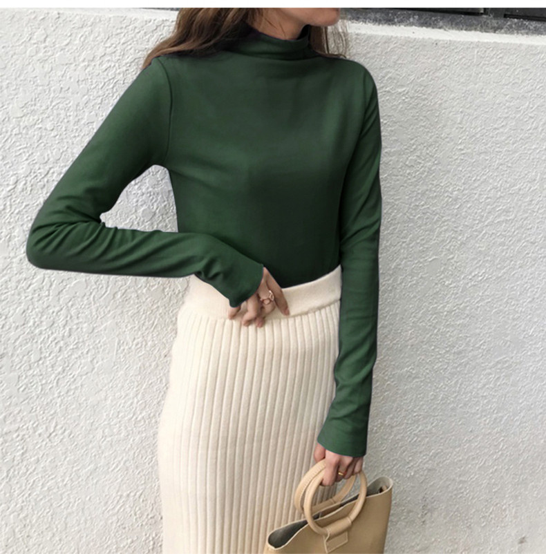 Базовый приятный телу демисезонный сексуальный осенний лонгслив, высокий воротник, коллекция 2021, в западном стиле, в обтяжку