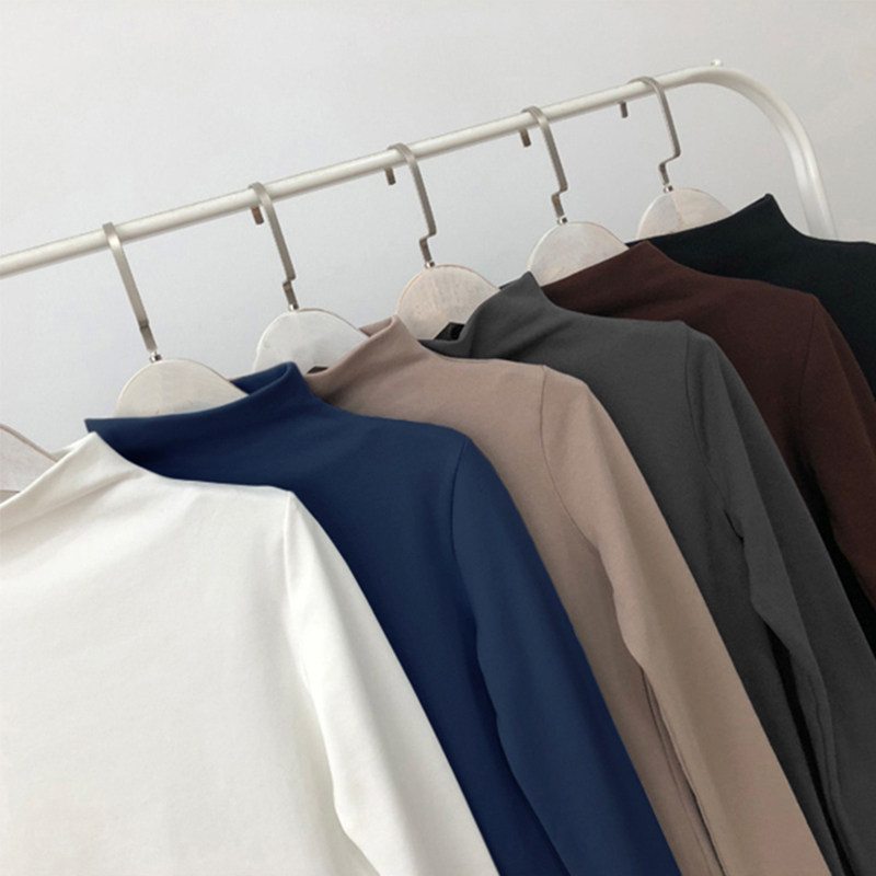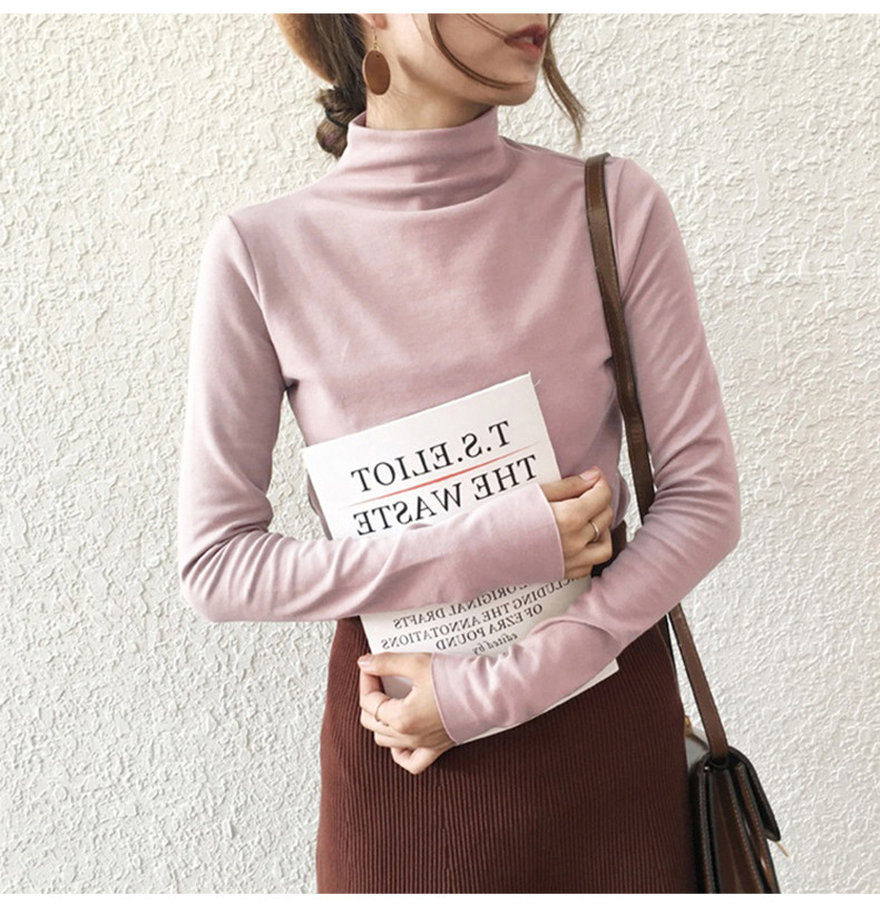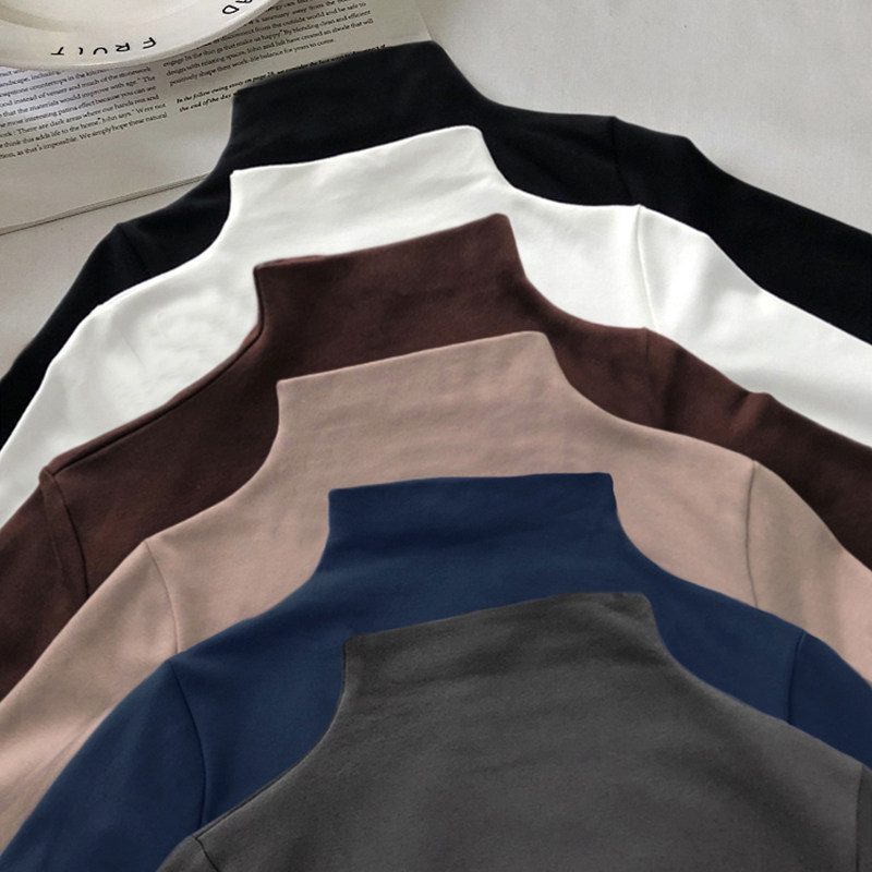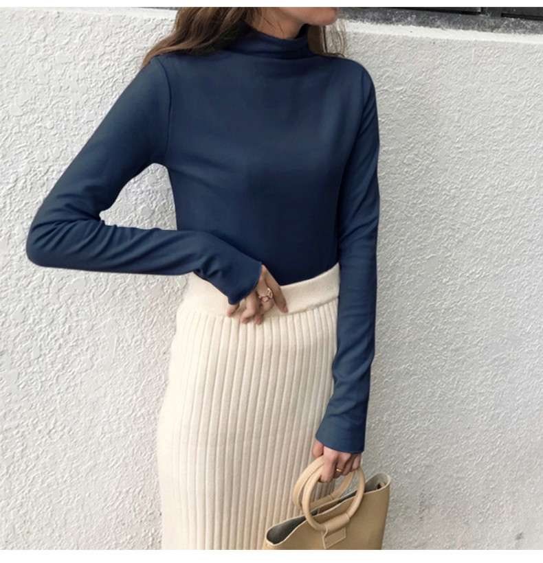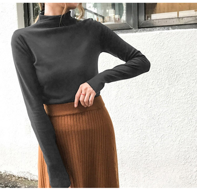 Базовый приятный телу демисезонный сексуальный осенний лонгслив, высокий воротник, коллекция 2021, в западном стиле, в обтяжку