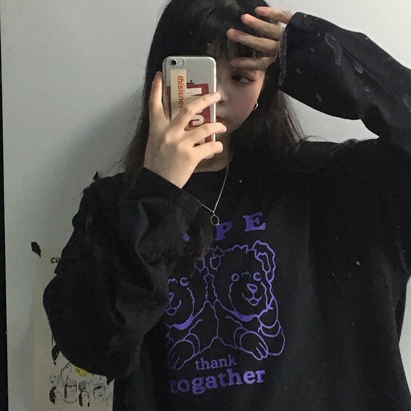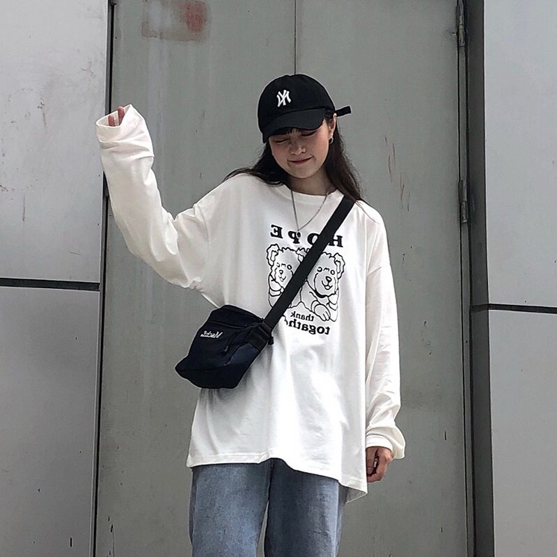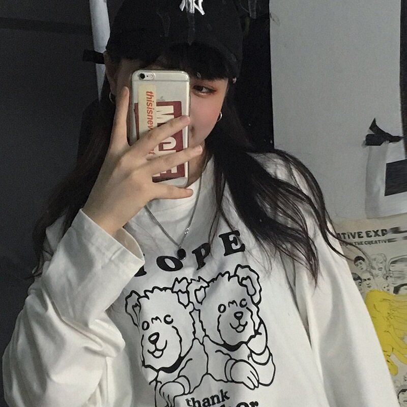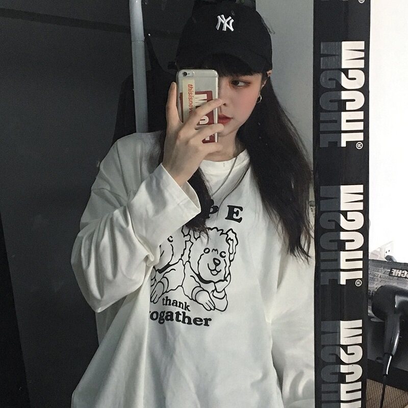 Трендовая футболка, ретро брендовый лонгслив для школьников, коллекция 2021, осенняя, популярно в интернете, оверсайз, в корейском стиле
