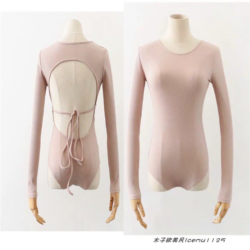 Брендовый сексуальный лонгслив с круглым воротником, боди, европейский стиль, популярно в интернете, в обтяжку, с открытой спиной