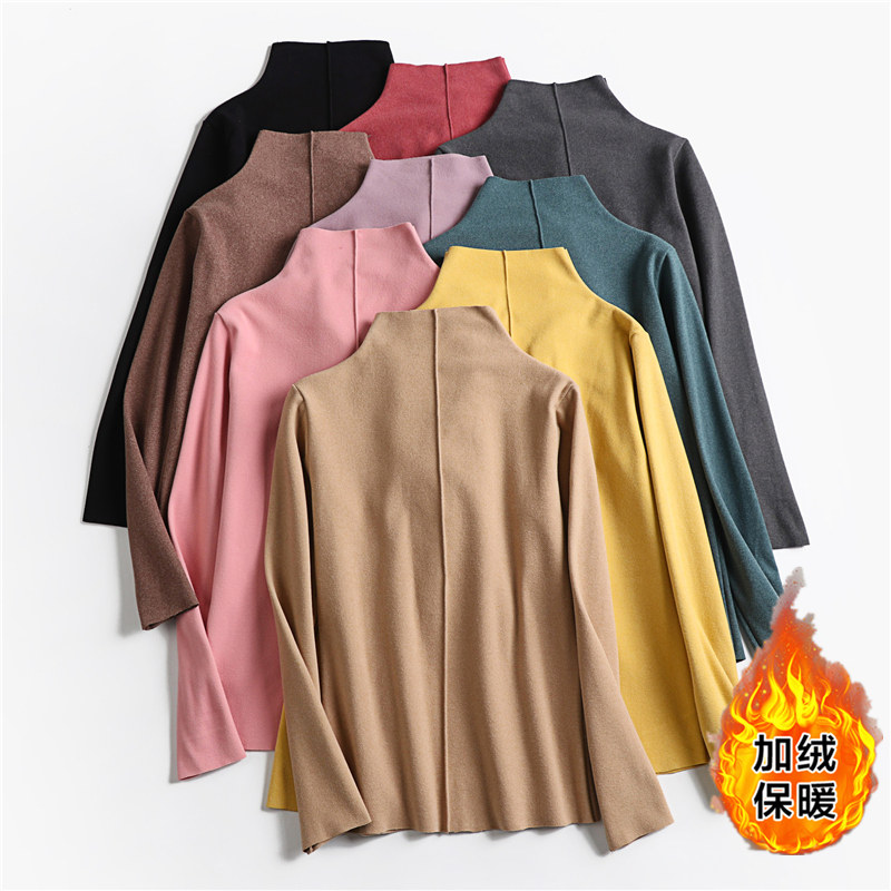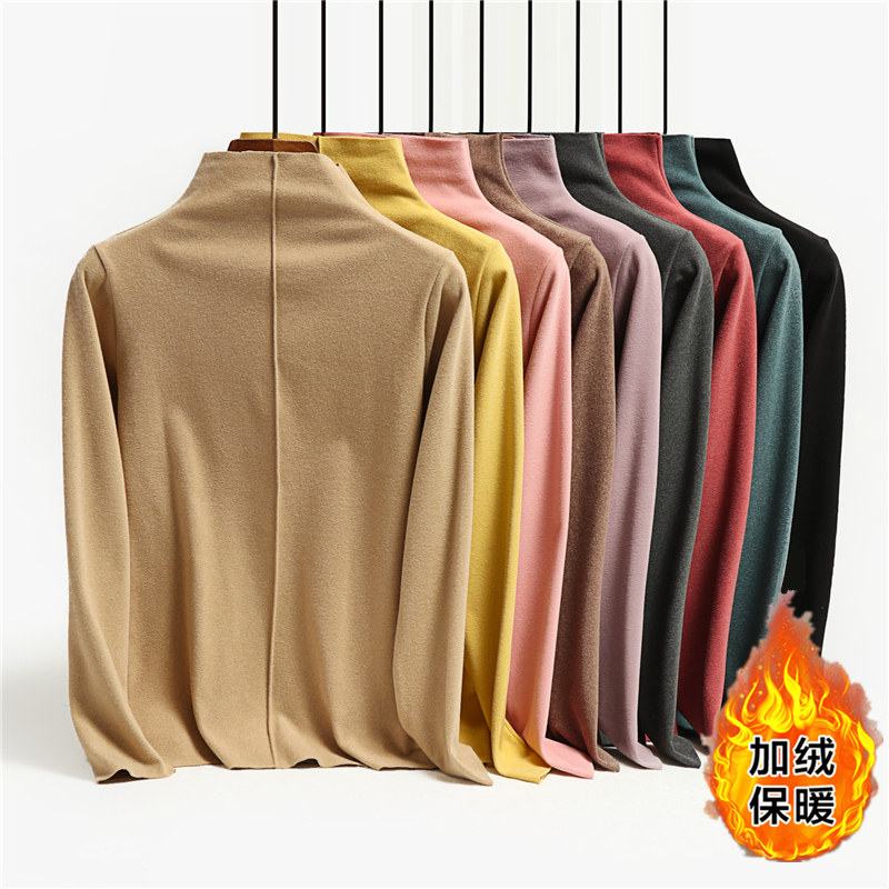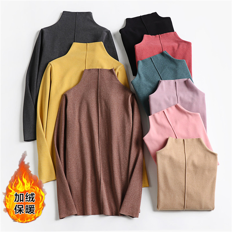 Двусторонний бархатный базовый приятный телу лонгслив, демисезонная утепленная футболка, термобелье, высокий воротник, в западном стиле