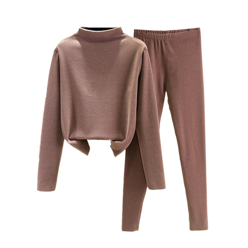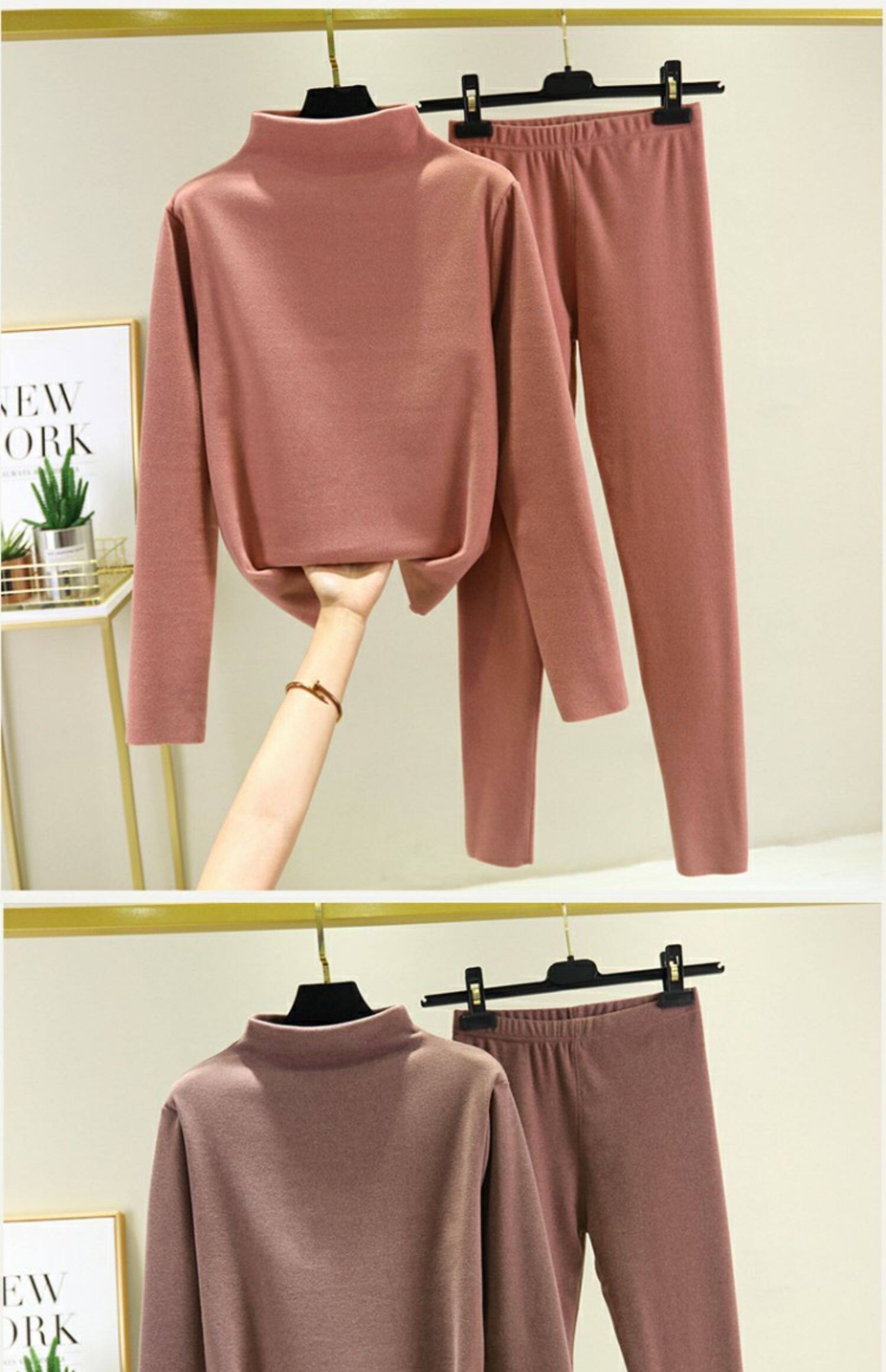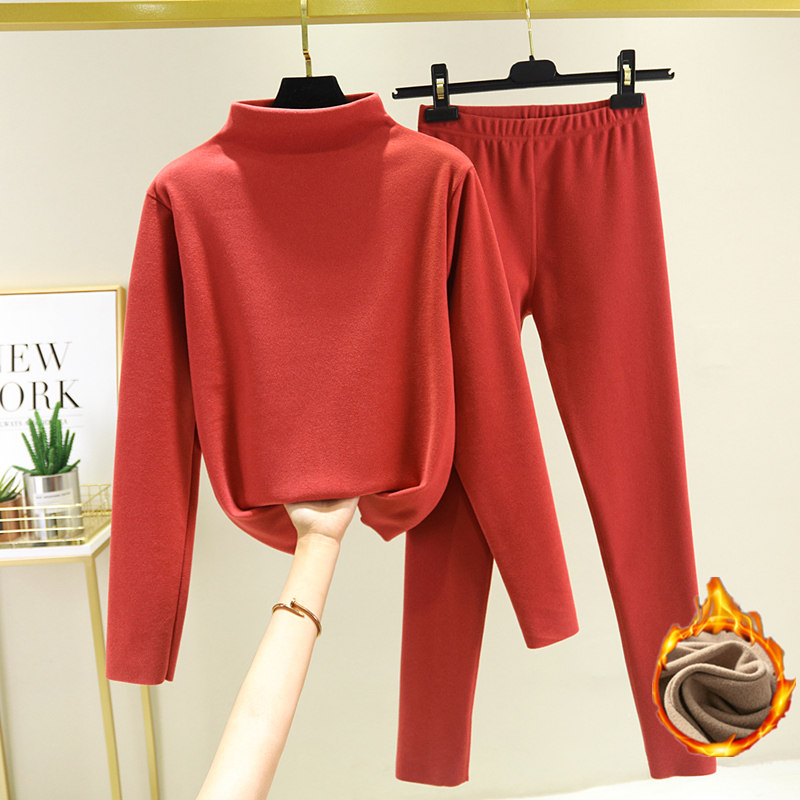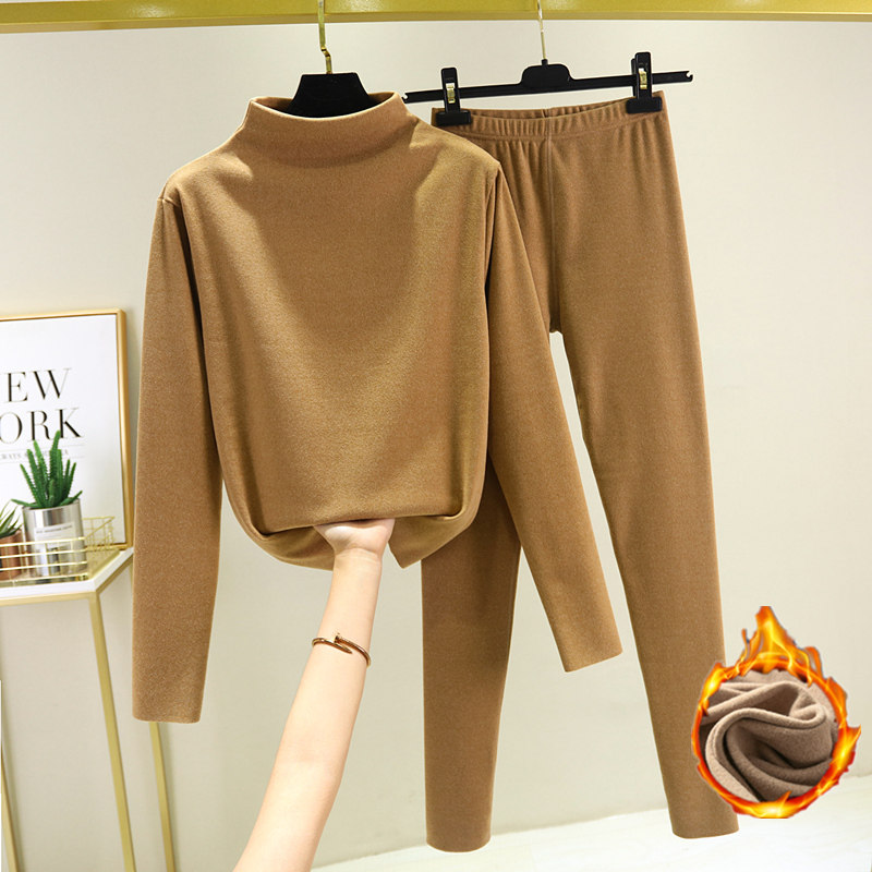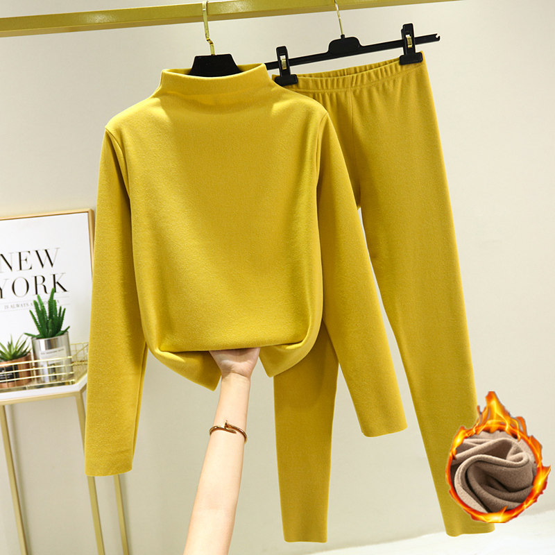 Двусторонний бархатный базовый приятный телу зимний удерживающий тепло комплект, утепленное термобелье, высокий воротник