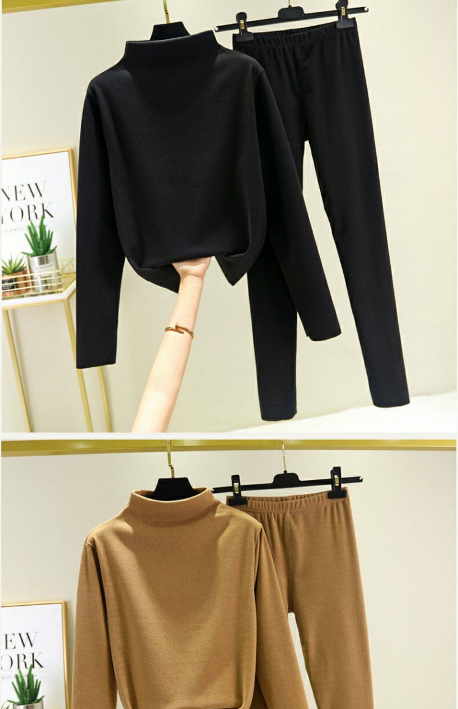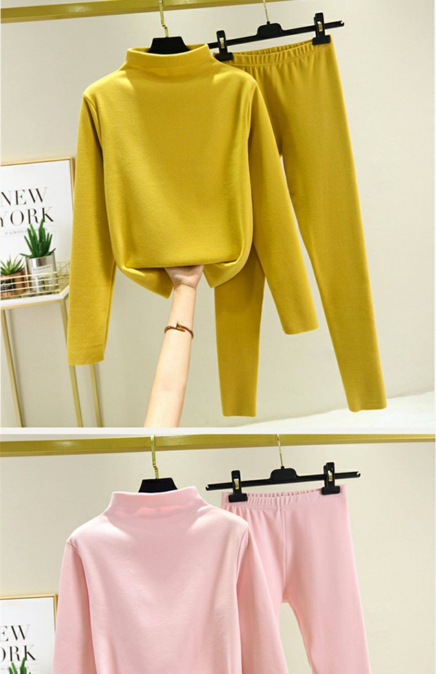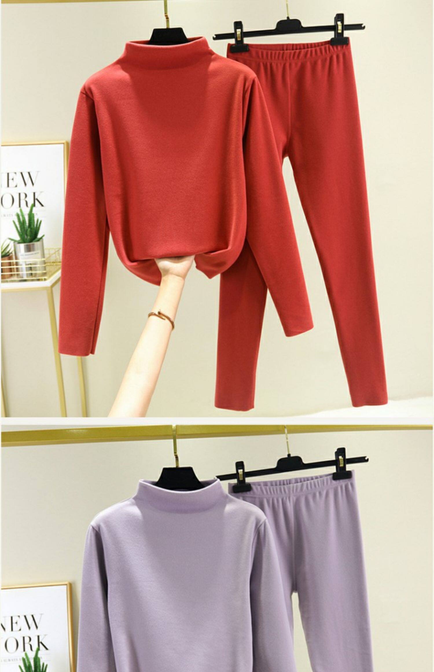 Двусторонний бархатный базовый приятный телу зимний удерживающий тепло комплект, утепленное термобелье, высокий воротник