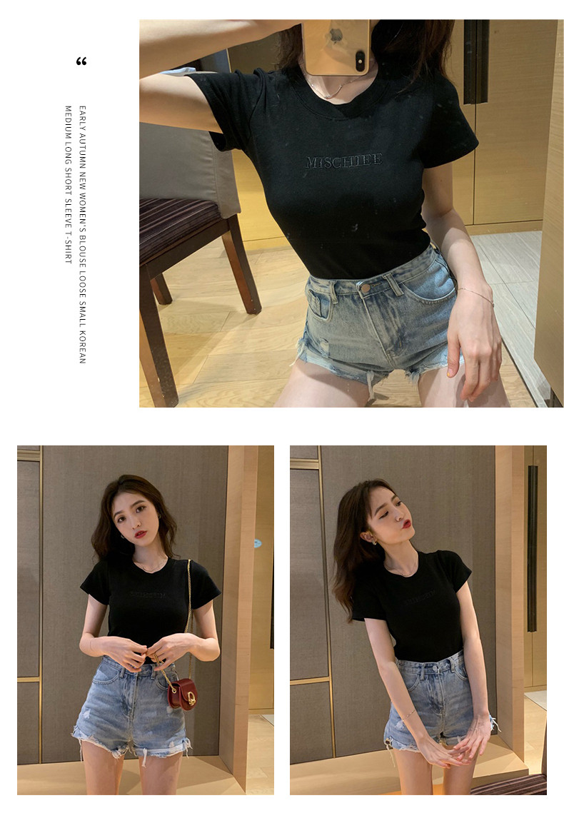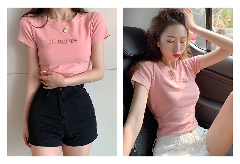 Tide, сексуальная модная летняя футболка с коротким рукавом, популярно в интернете, в обтяжку, в западном стиле