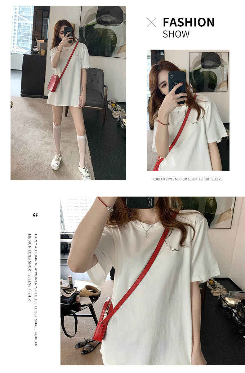 Tide, модная брендовая длинная летняя футболка с коротким рукавом, популярно в интернете, в корейском стиле, в западном стиле, средней длины