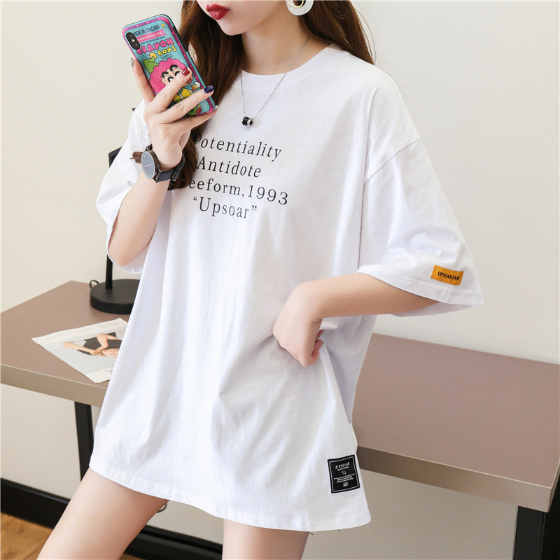 Белая летняя длинная брендовая футболка для школьников, короткий рукав, оверсайз, средней длины, в западном стиле