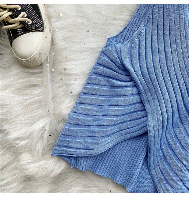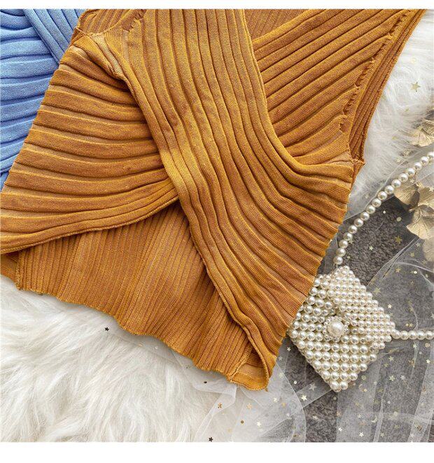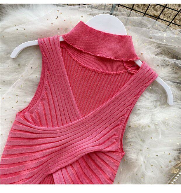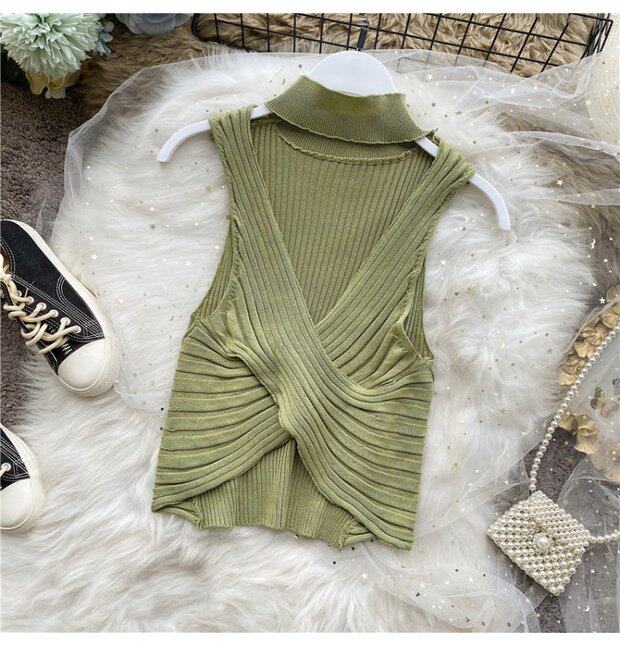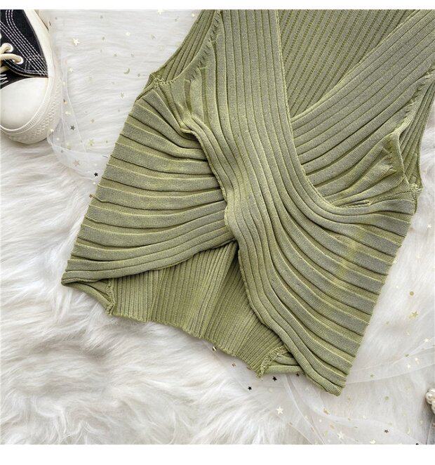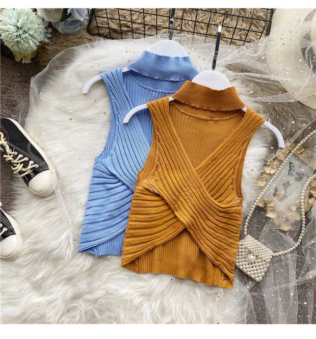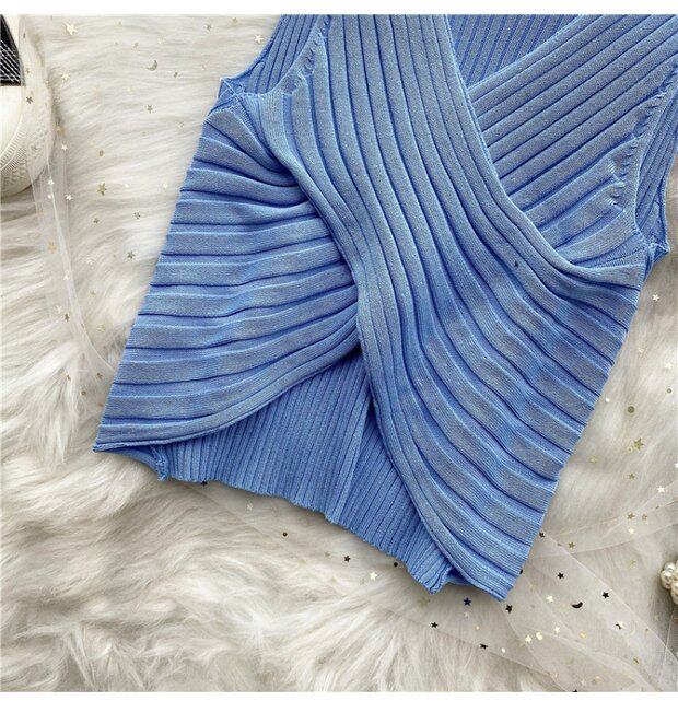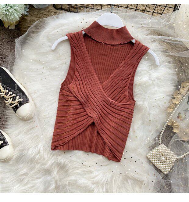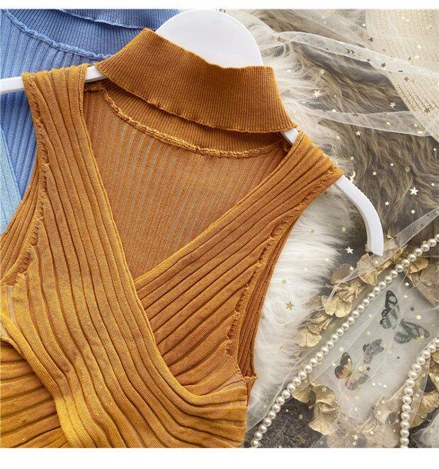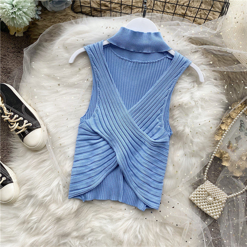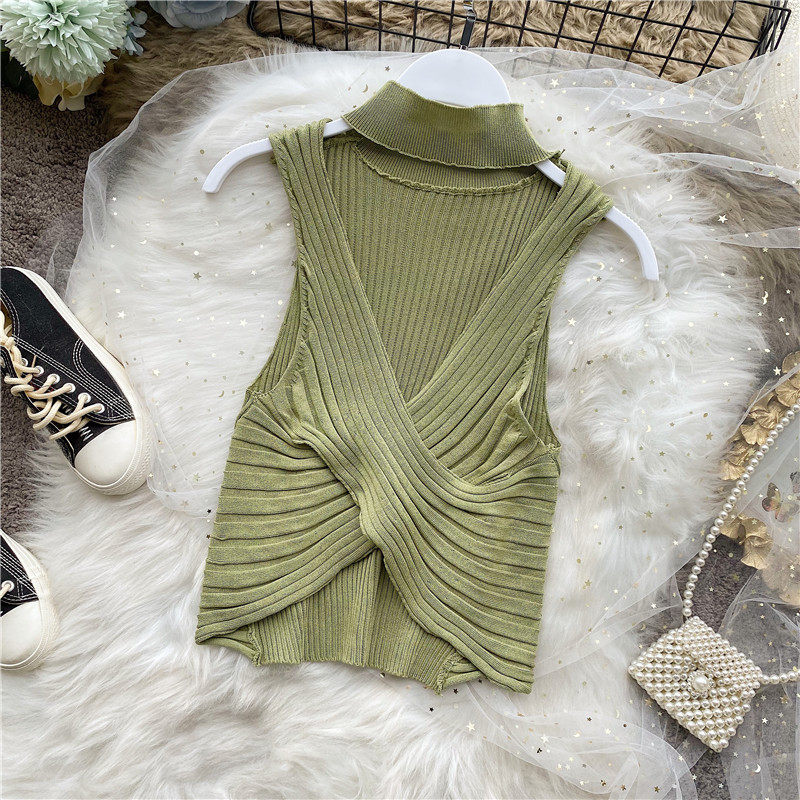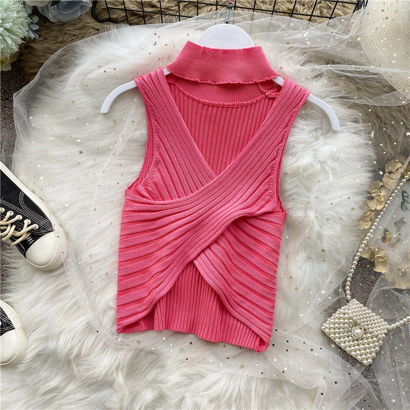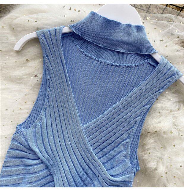 Сексуальная дизайнерская трикотажная брошь без рукавов, футболка, в корейском стиле, облегающий крой, тренд сезона