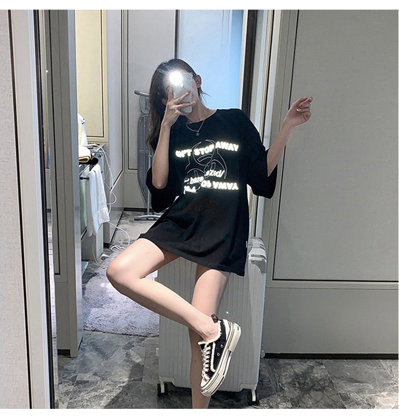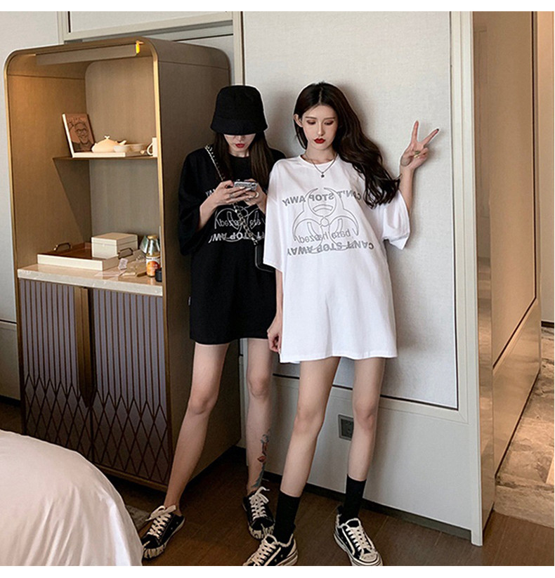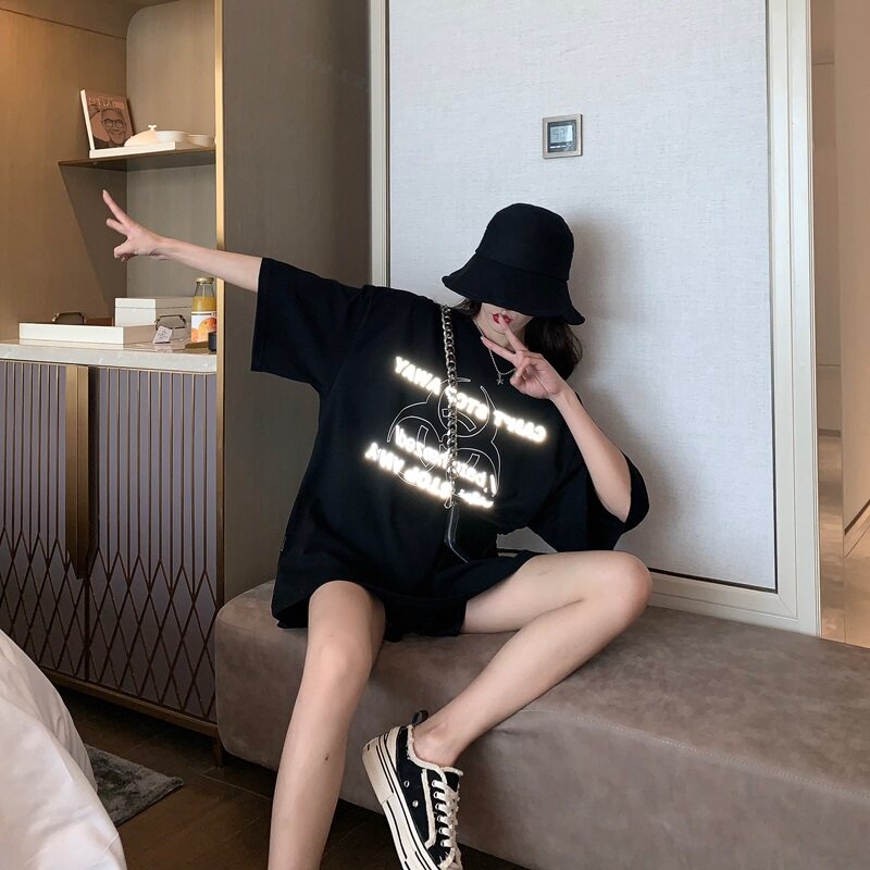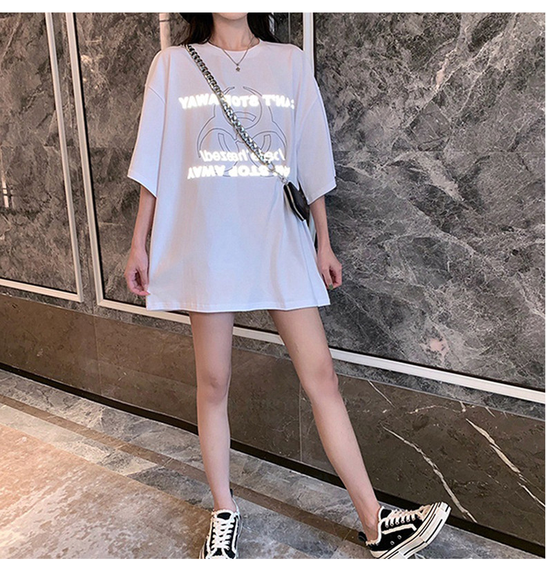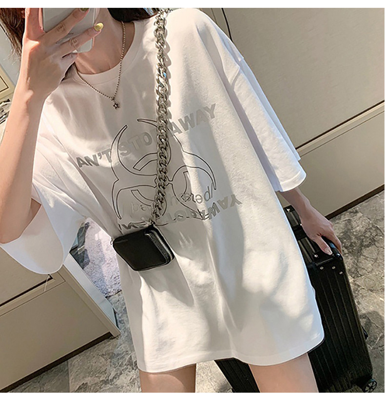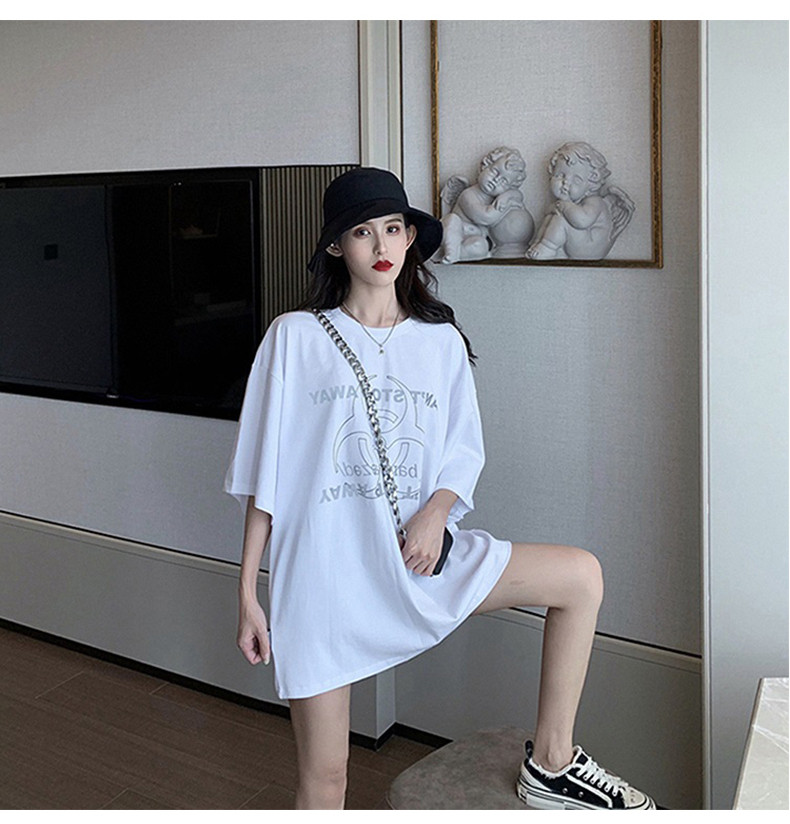 Белая брендовая длинная сексуальная модная футболка, короткий рукав, в западном стиле, средней длины, европейский стиль