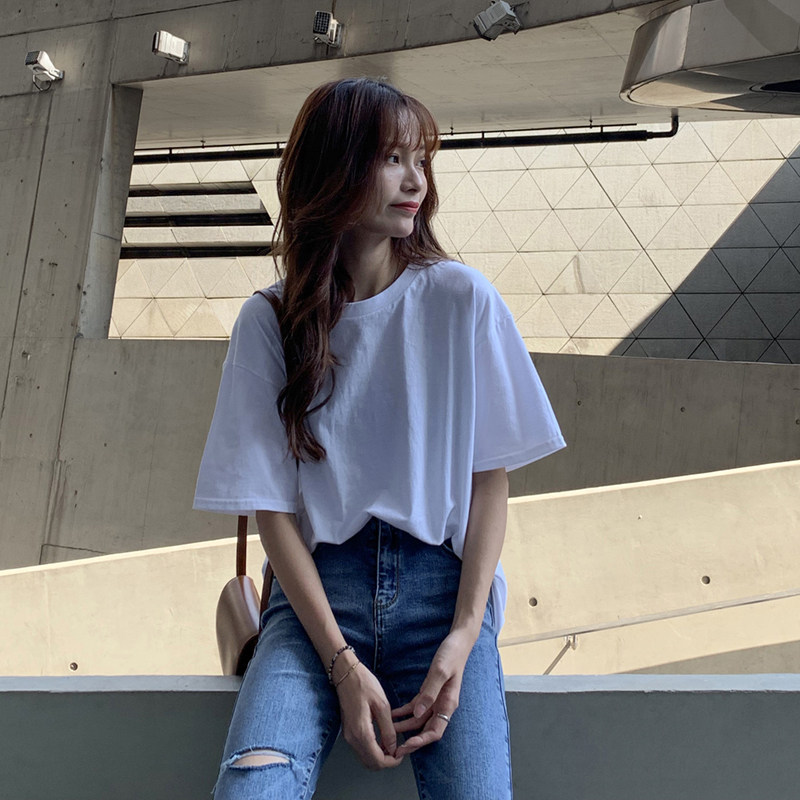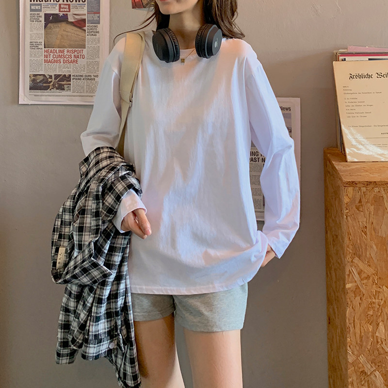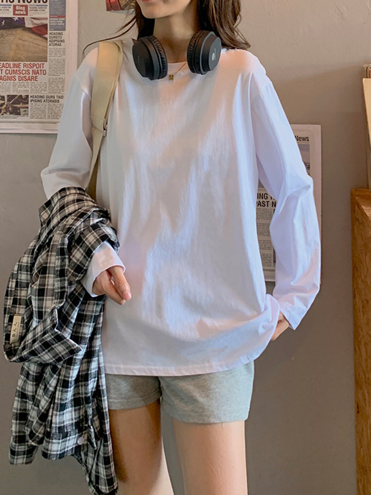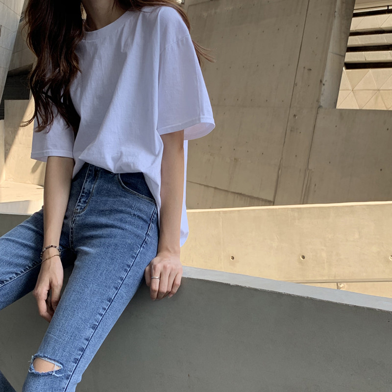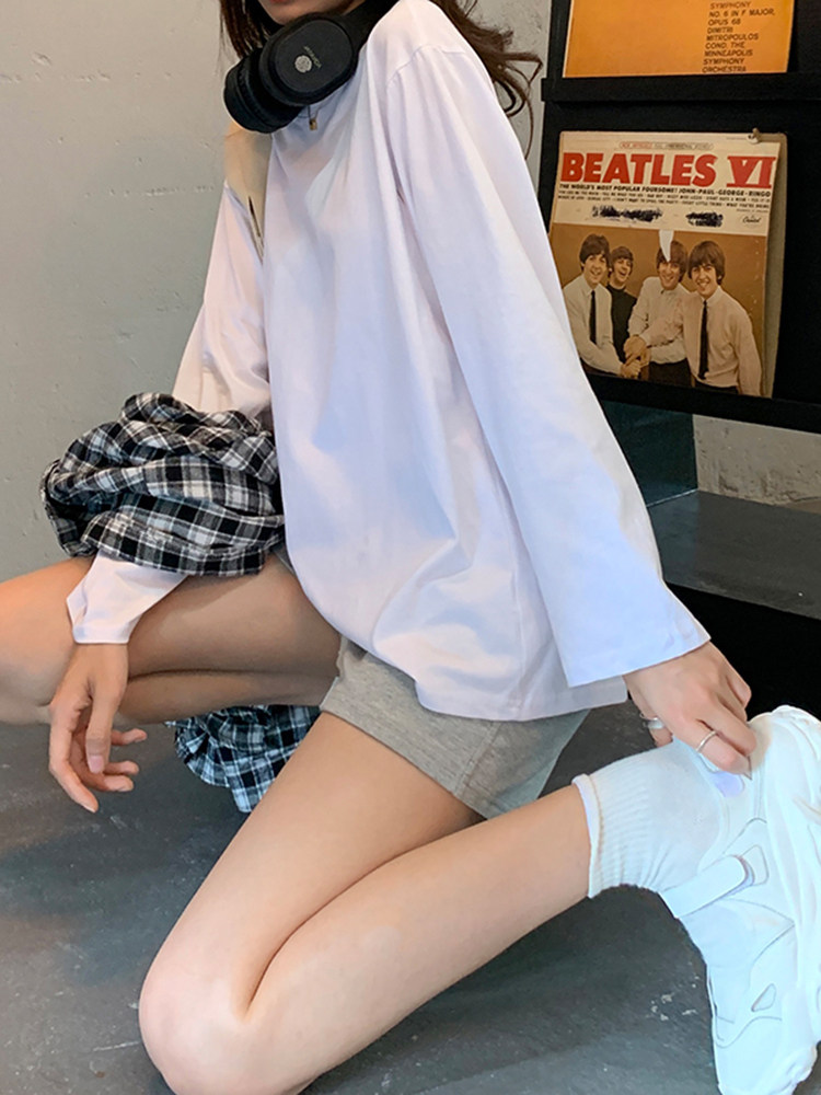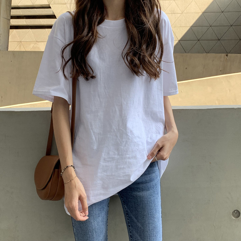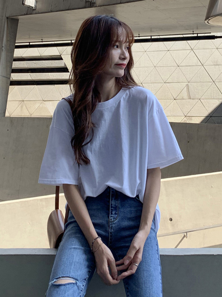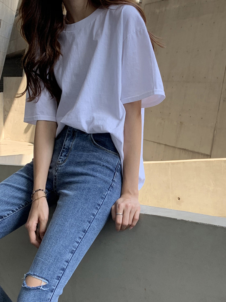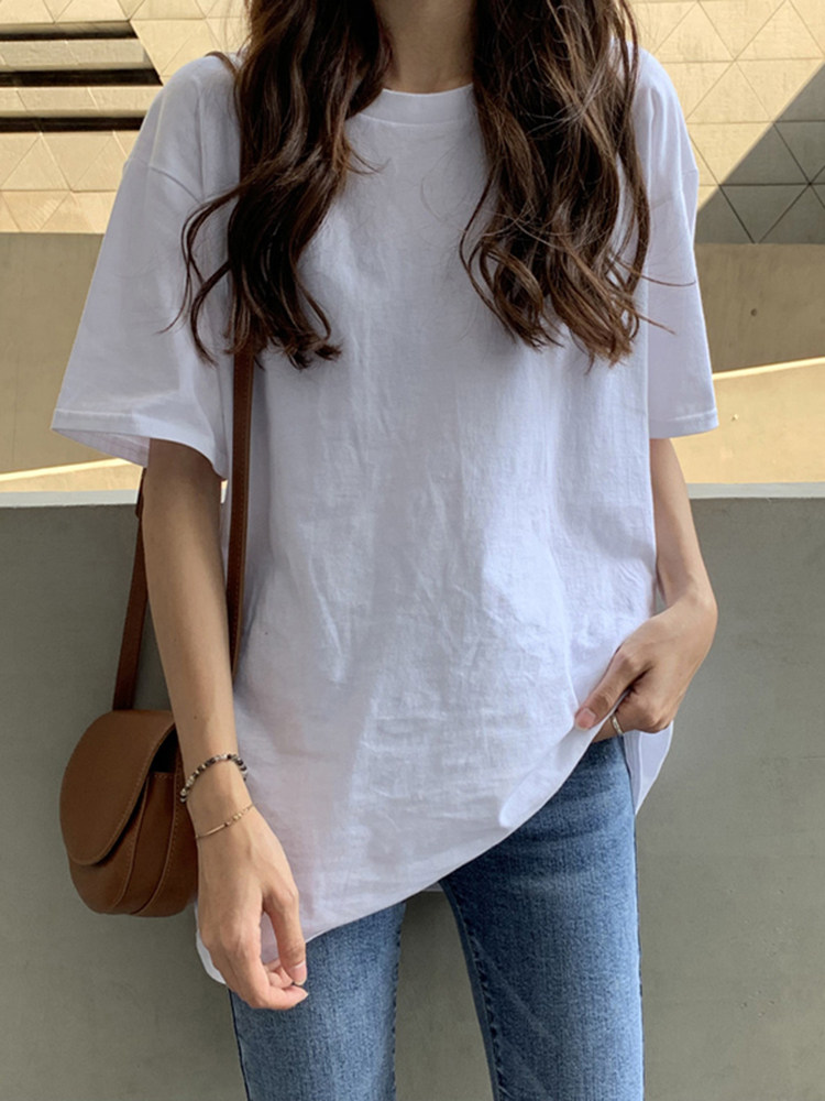 Белая летняя футболка, хлопковый базовый приятный телу синий лонгслив, оверсайз