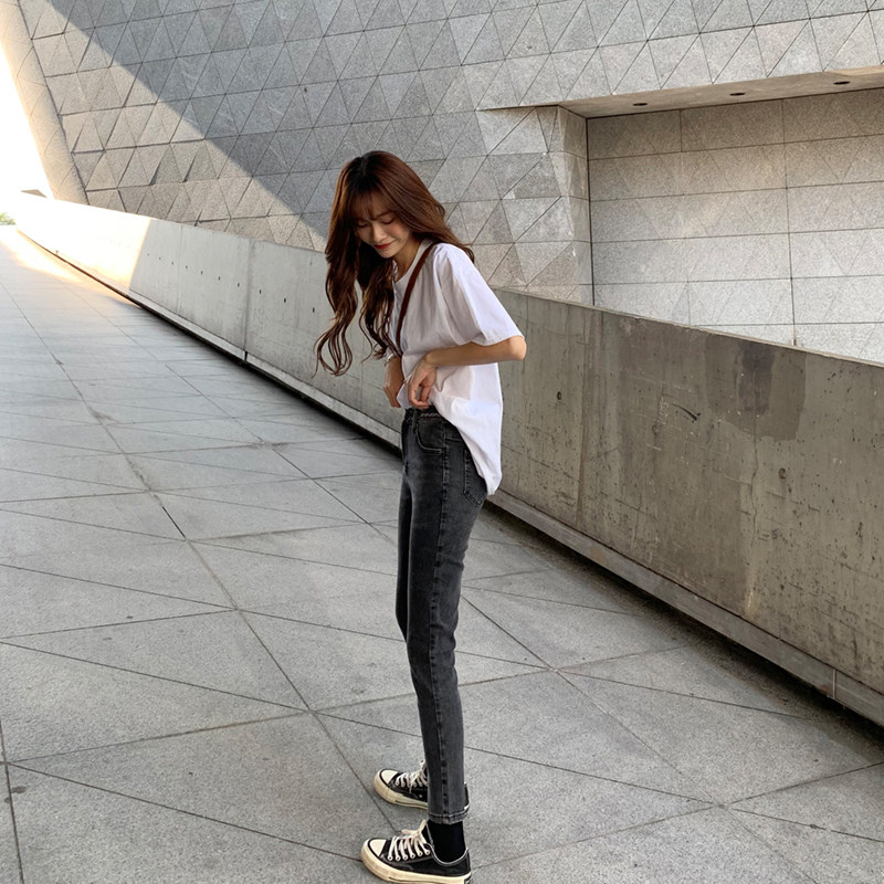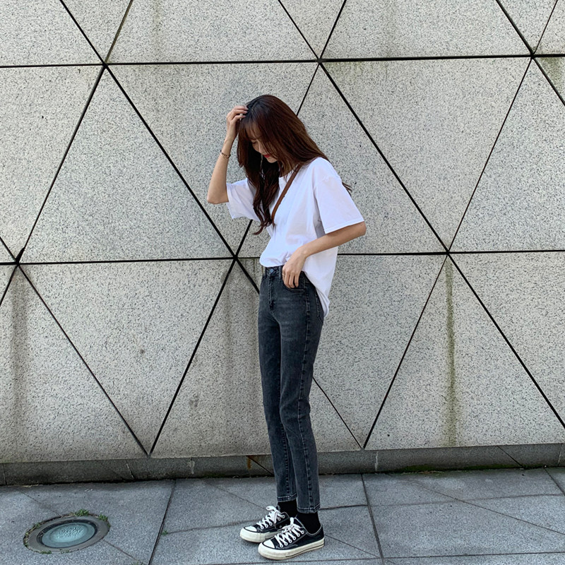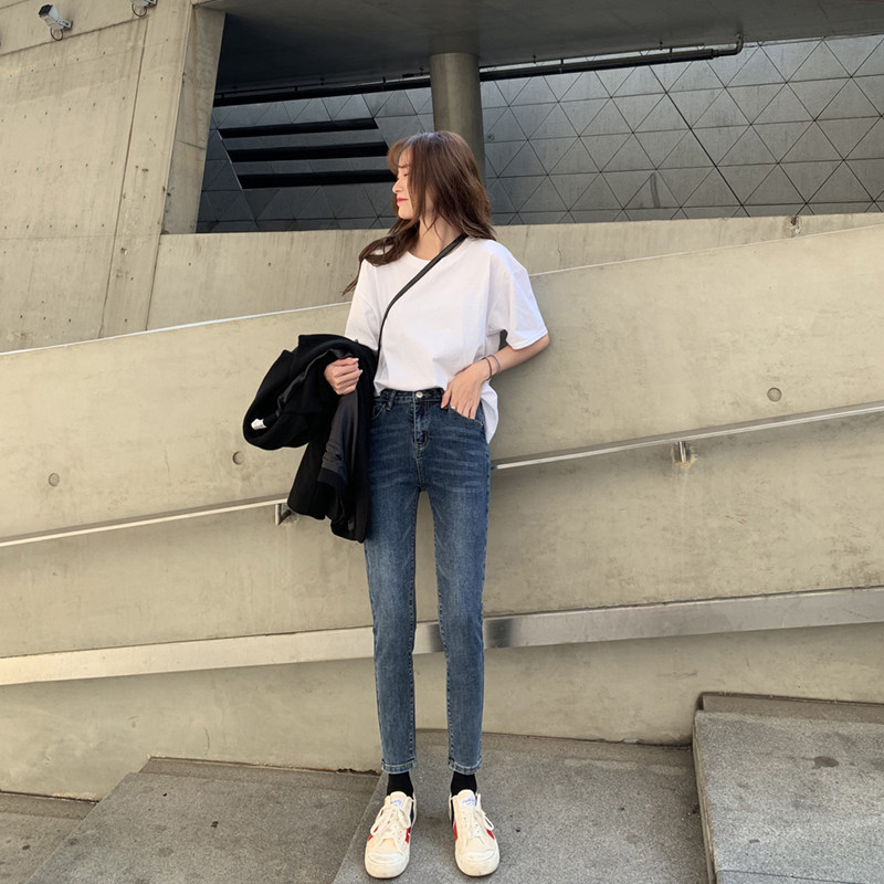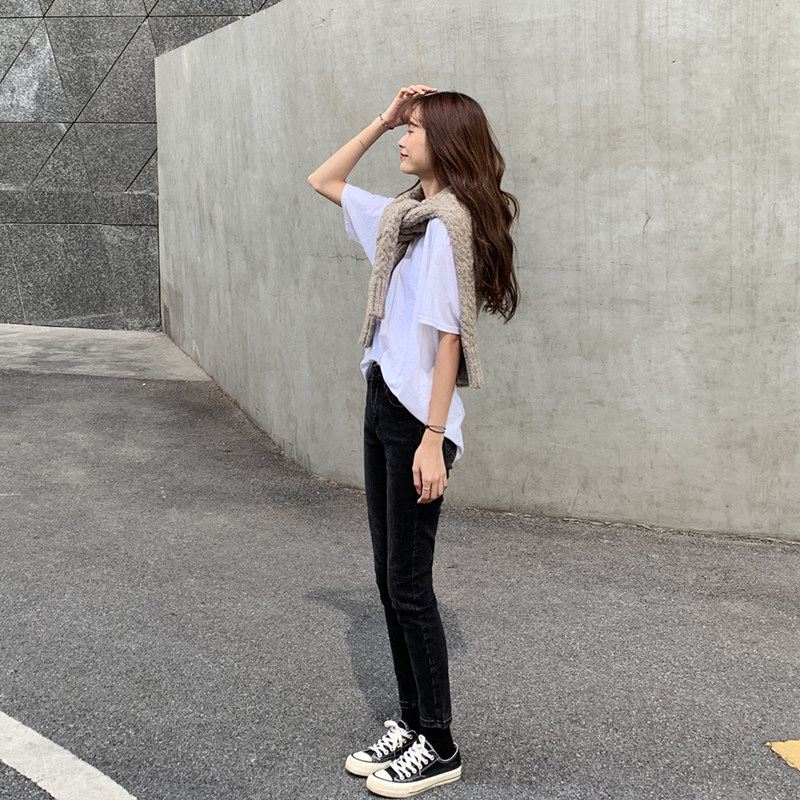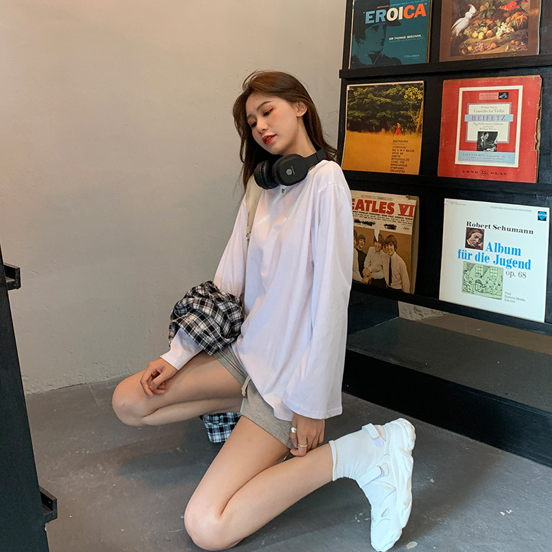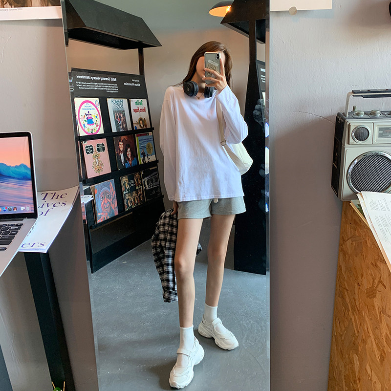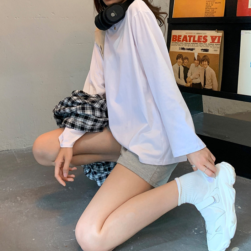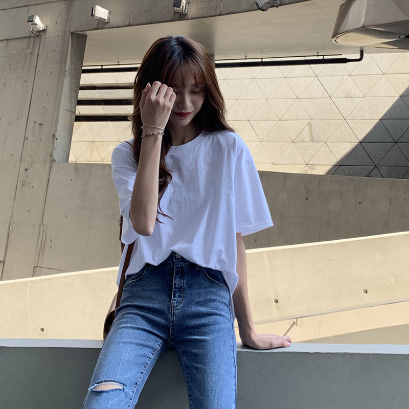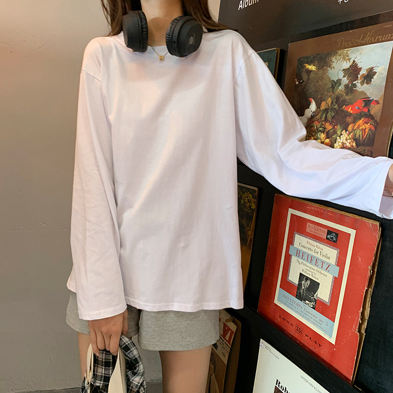Белая летняя футболка, хлопковый базовый приятный телу синий лонгслив, оверсайз