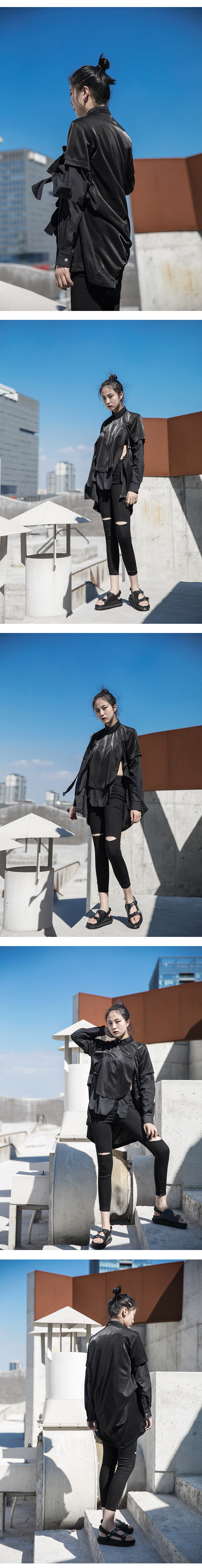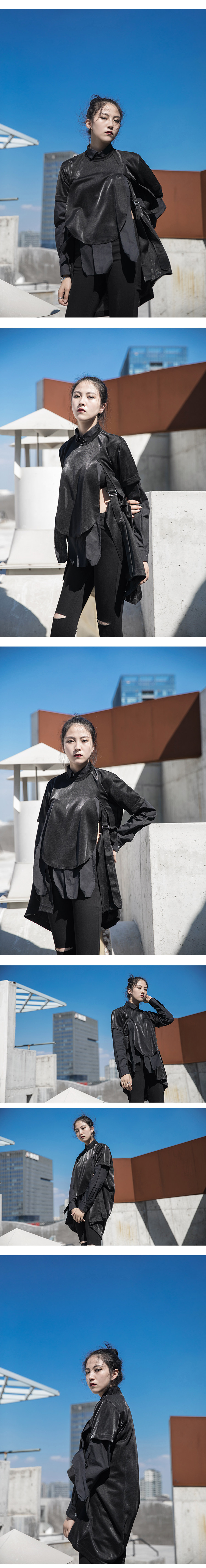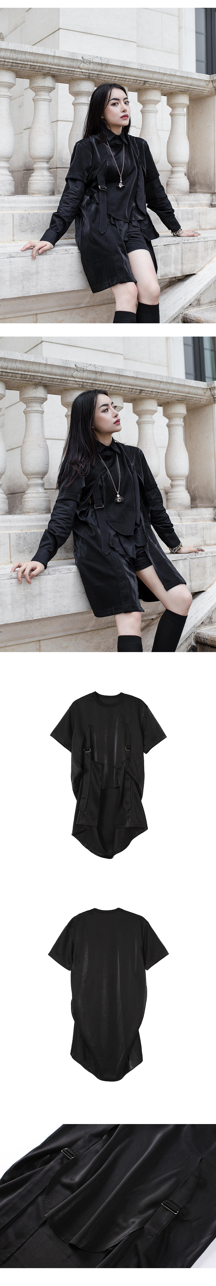 Весенний осенний длинный лонгслив, дарк-панк, средней длины