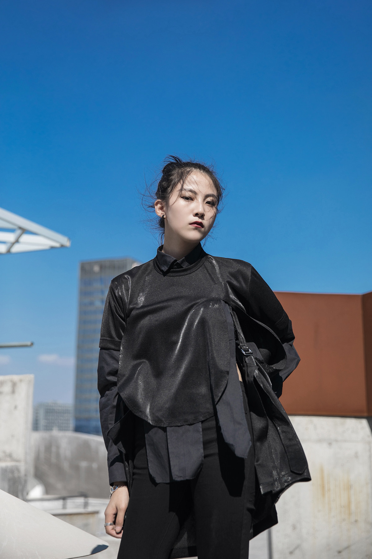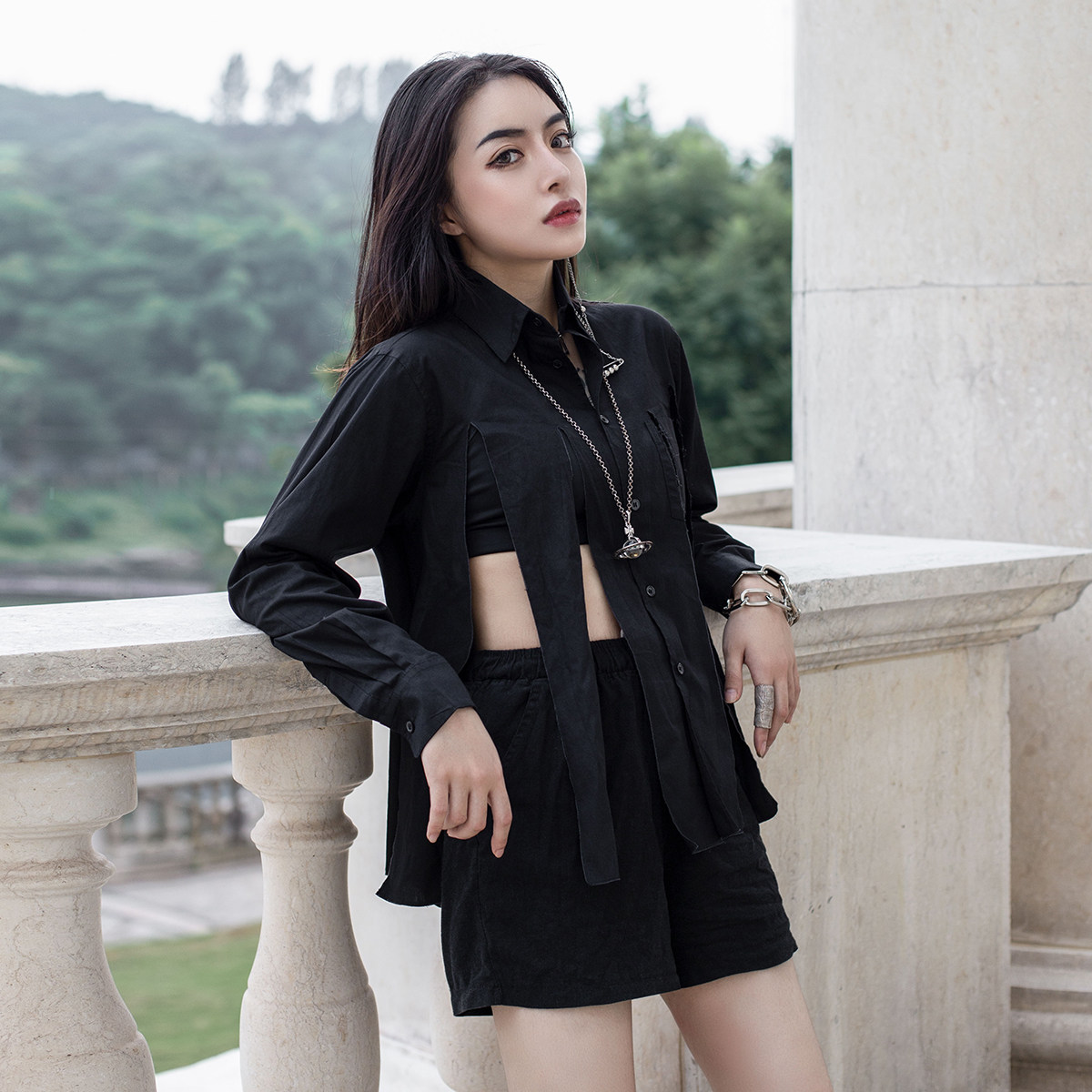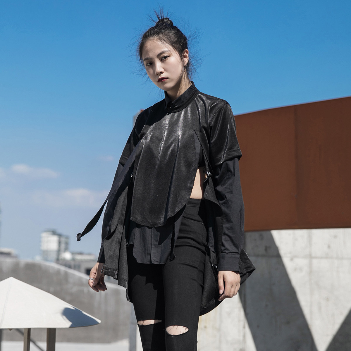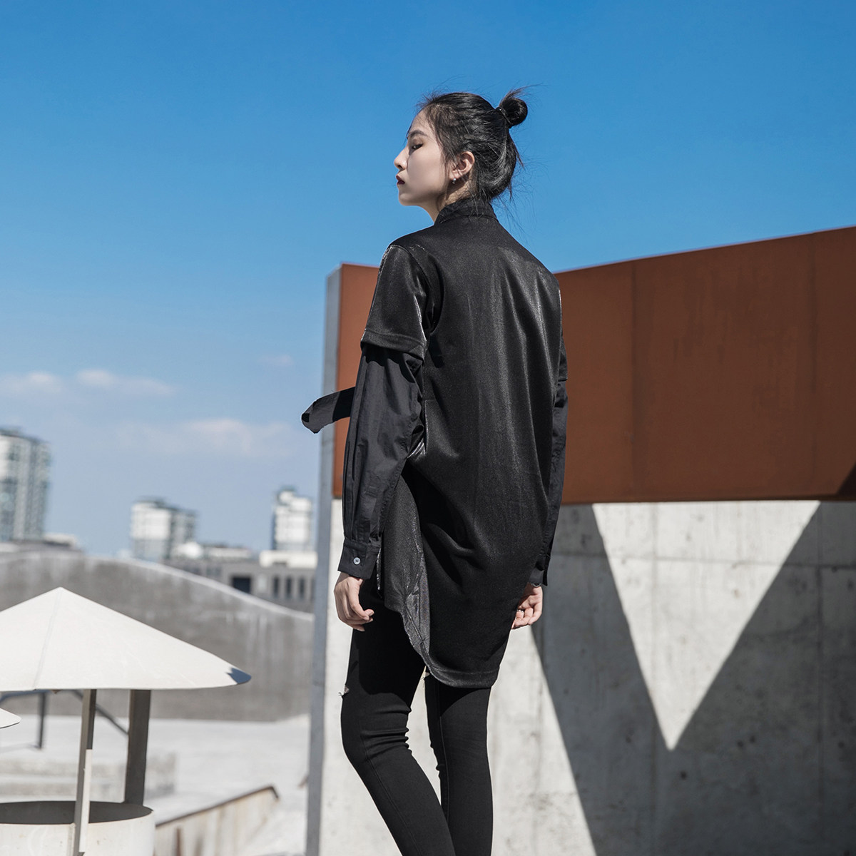 Весенний осенний длинный лонгслив, дарк-панк, средней длины