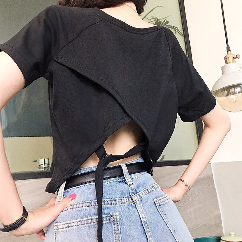 Tide, короткая сексуальная футболка с коротким рукавом для школьников, популярно в интернете, с открытой спиной