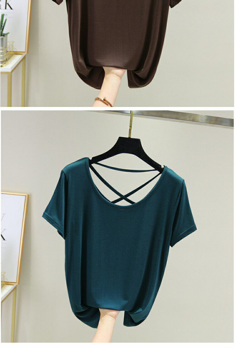 Тонкая базовая приятная телу цветная футболка, с открытой спиной, красивая спина, по фигуре, короткий рукав