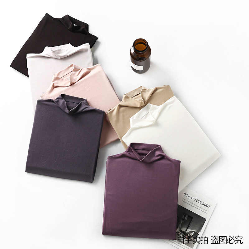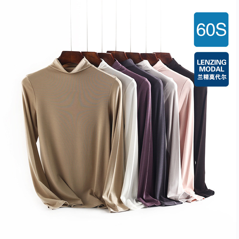 Весна и осень 60 графов Lenzing модальная женская футболка с высоким воротником эластичная повседневная нижняя рубашка большого размера повседневная женская футболка с длинным рукавом