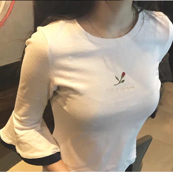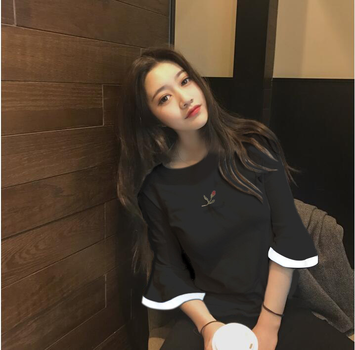 T -Frish Summer Corean Ulzzang Seven -точечная вышивка из рукавов с коротки