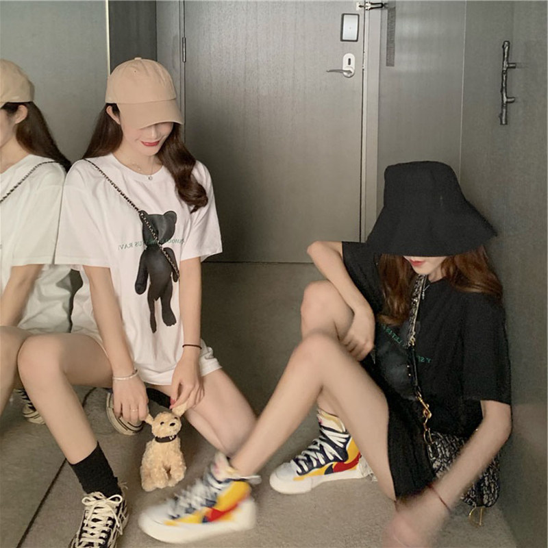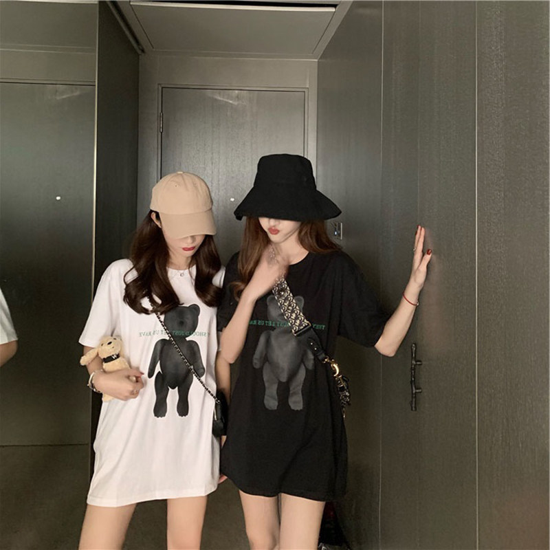 Черная длинная брендовая сексуальная футболка, короткий рукав, средней длины