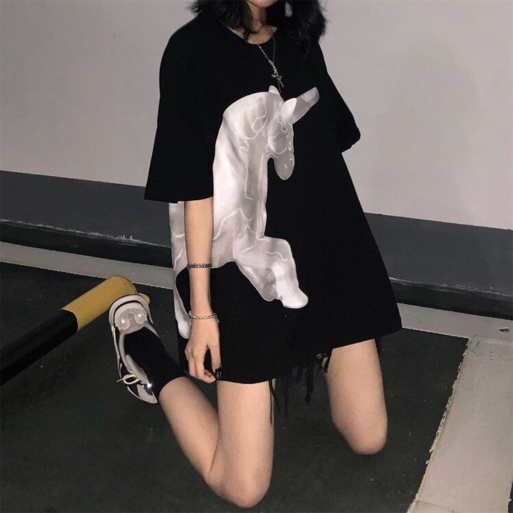 Tide, черная летняя дизайнерская футболка, короткий рукав, коллекция 2022, в корейском стиле, тренд сезона