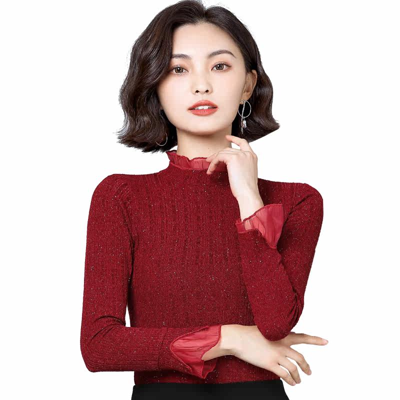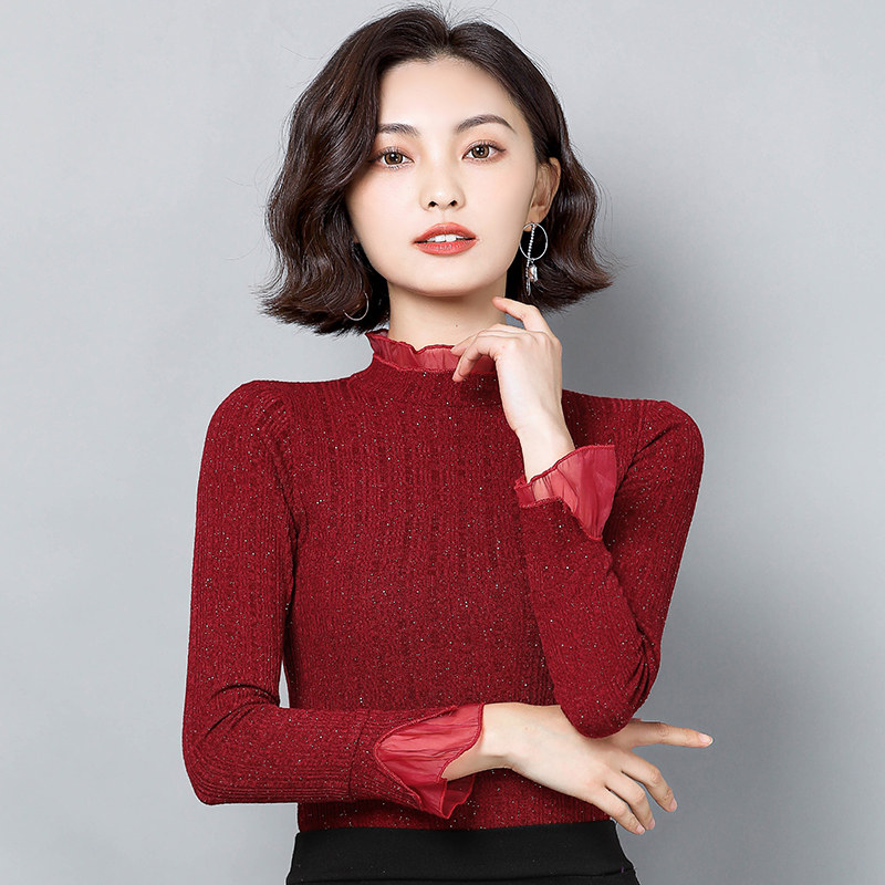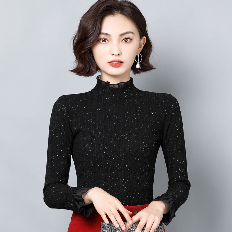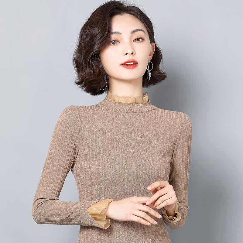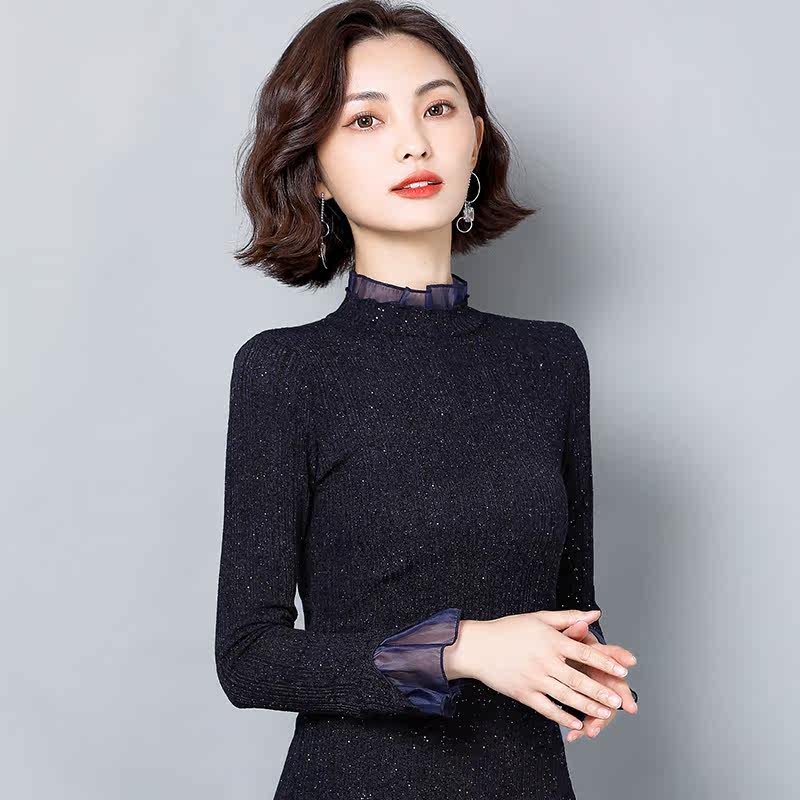 Кружевной шелковый приятный телу осенний лонгслив, модная футболка, облегающий крой, в западном стиле