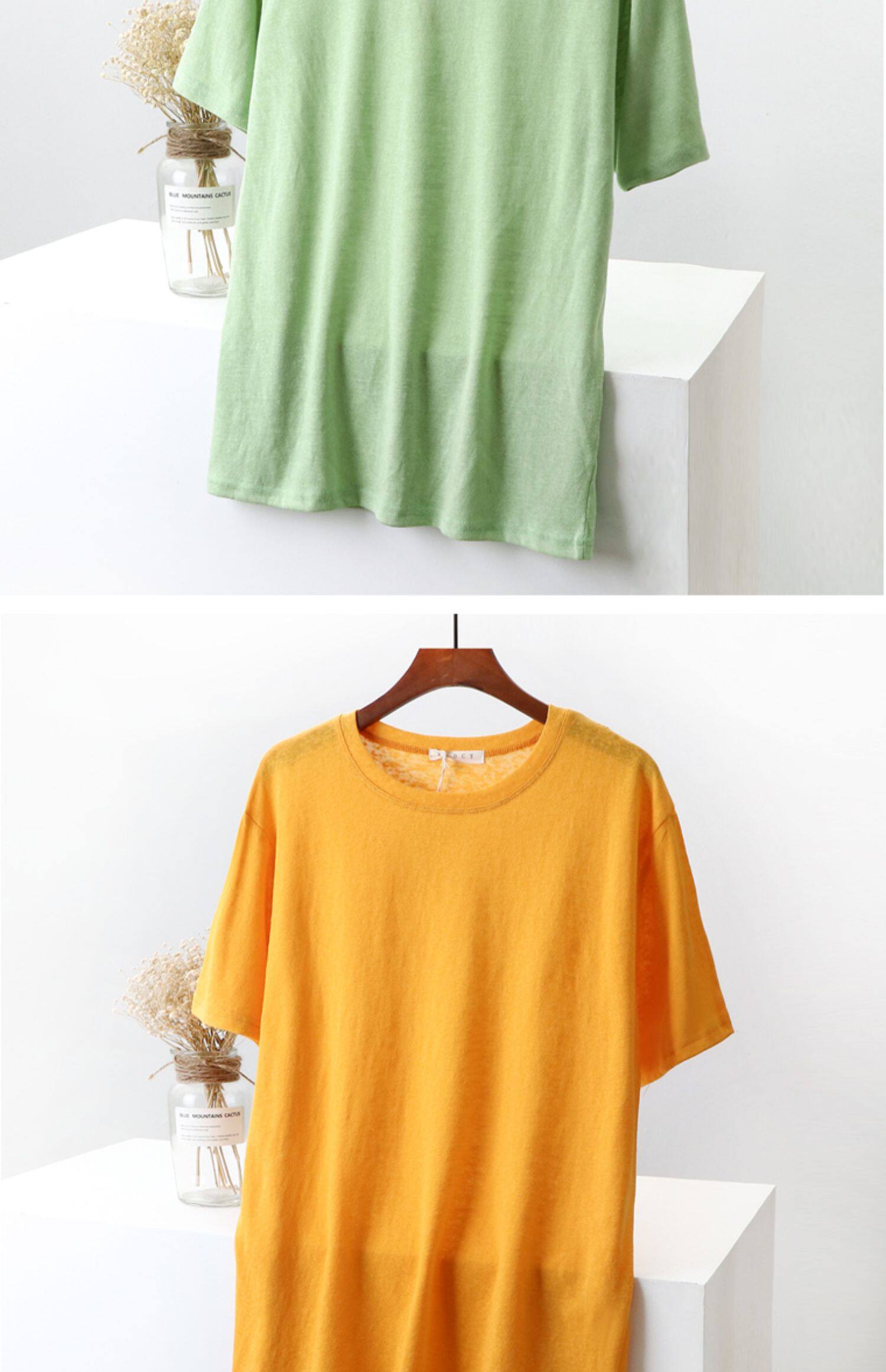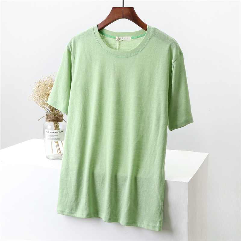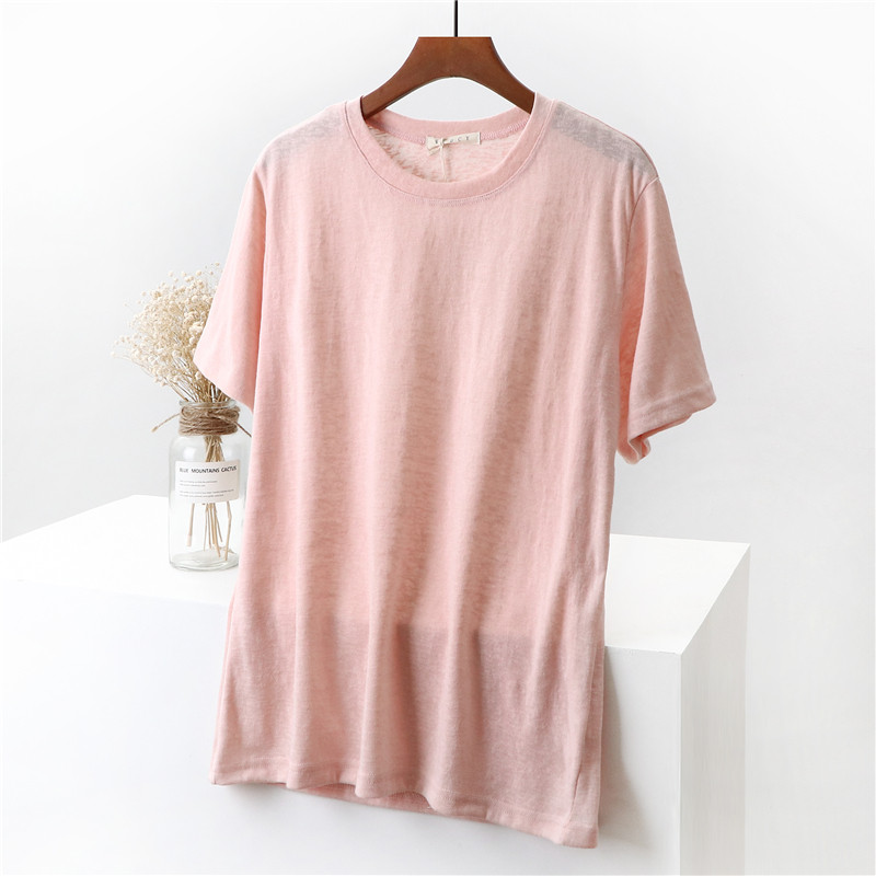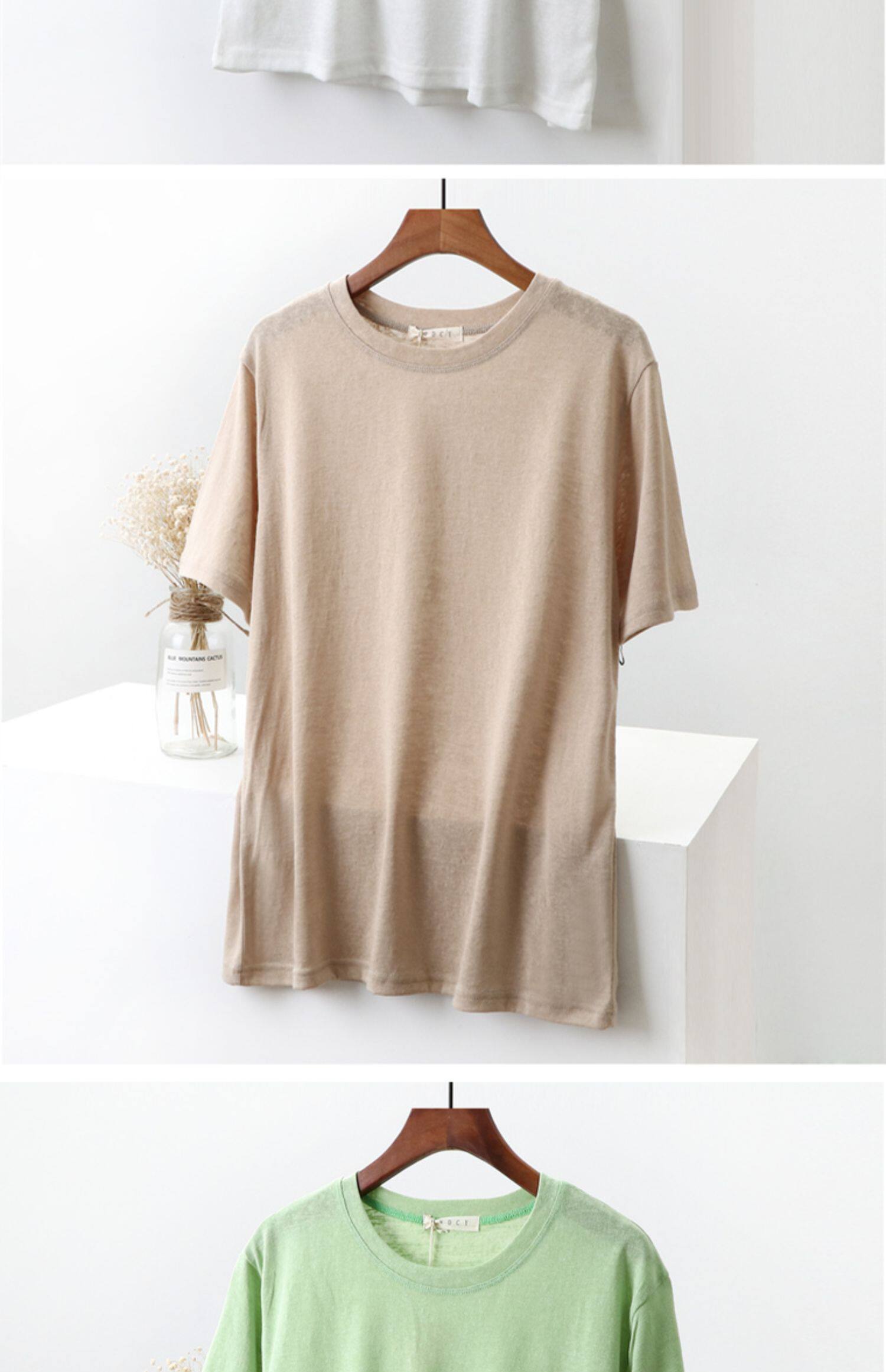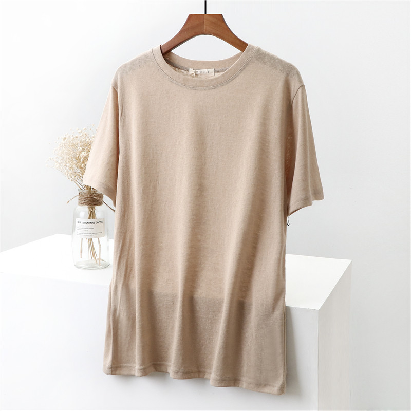 Бамбуковая хлопковая белая базовая приятная телу футболка с круглым воротником, коллекция 2023, свободный крой, из хлопка и льна