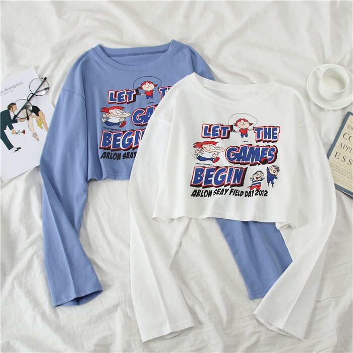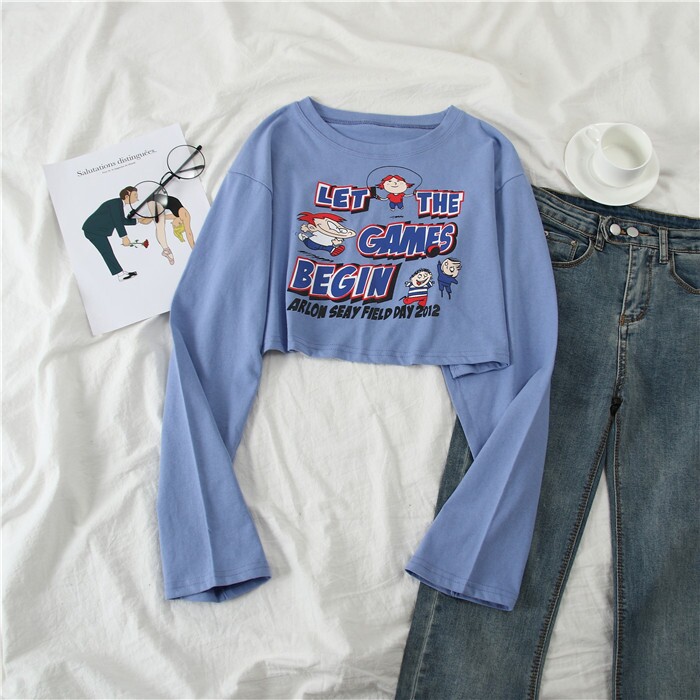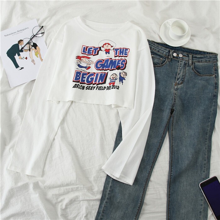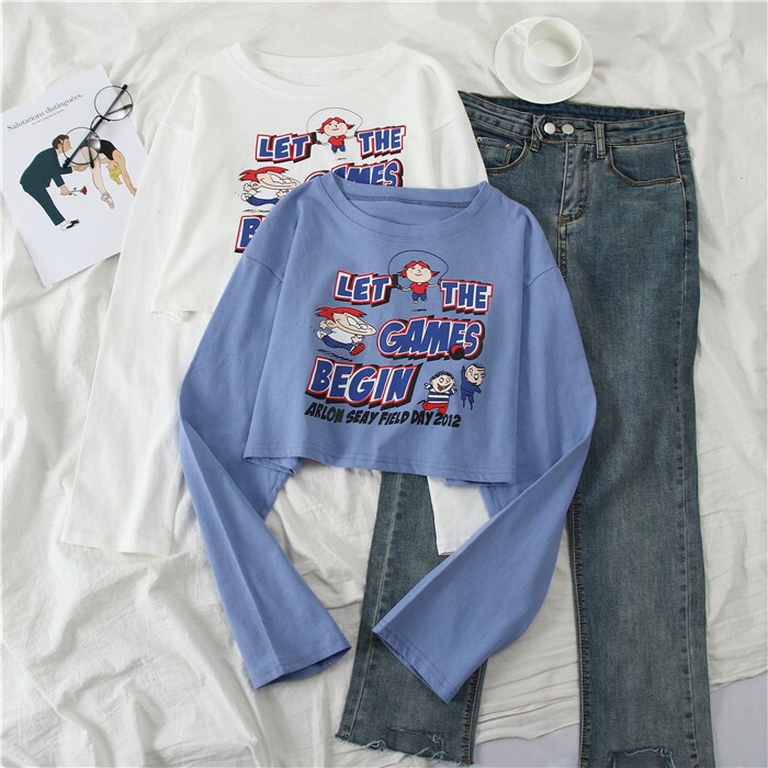 Весенняя футболка, короткий лонгслив для школьников и студентов, свободный крой