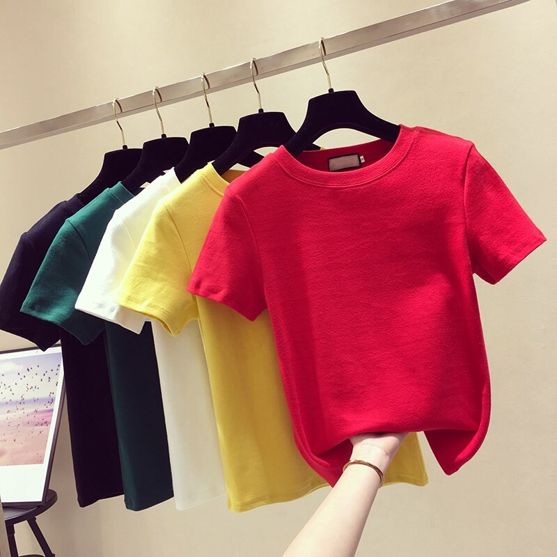 Весенняя базовая приятная телу футболка с круглым воротником, короткий рукав, 2020, в корейском стиле