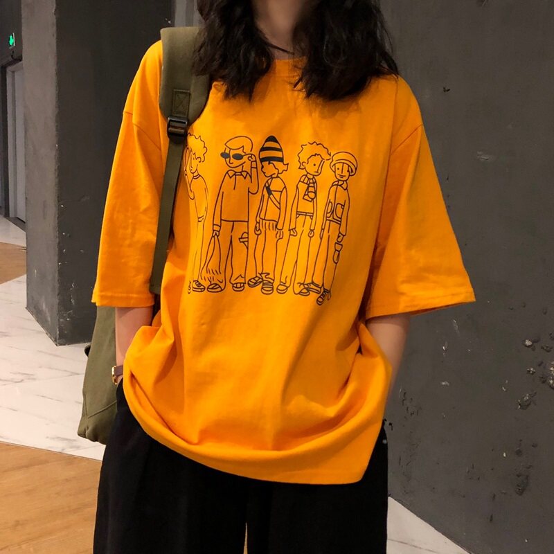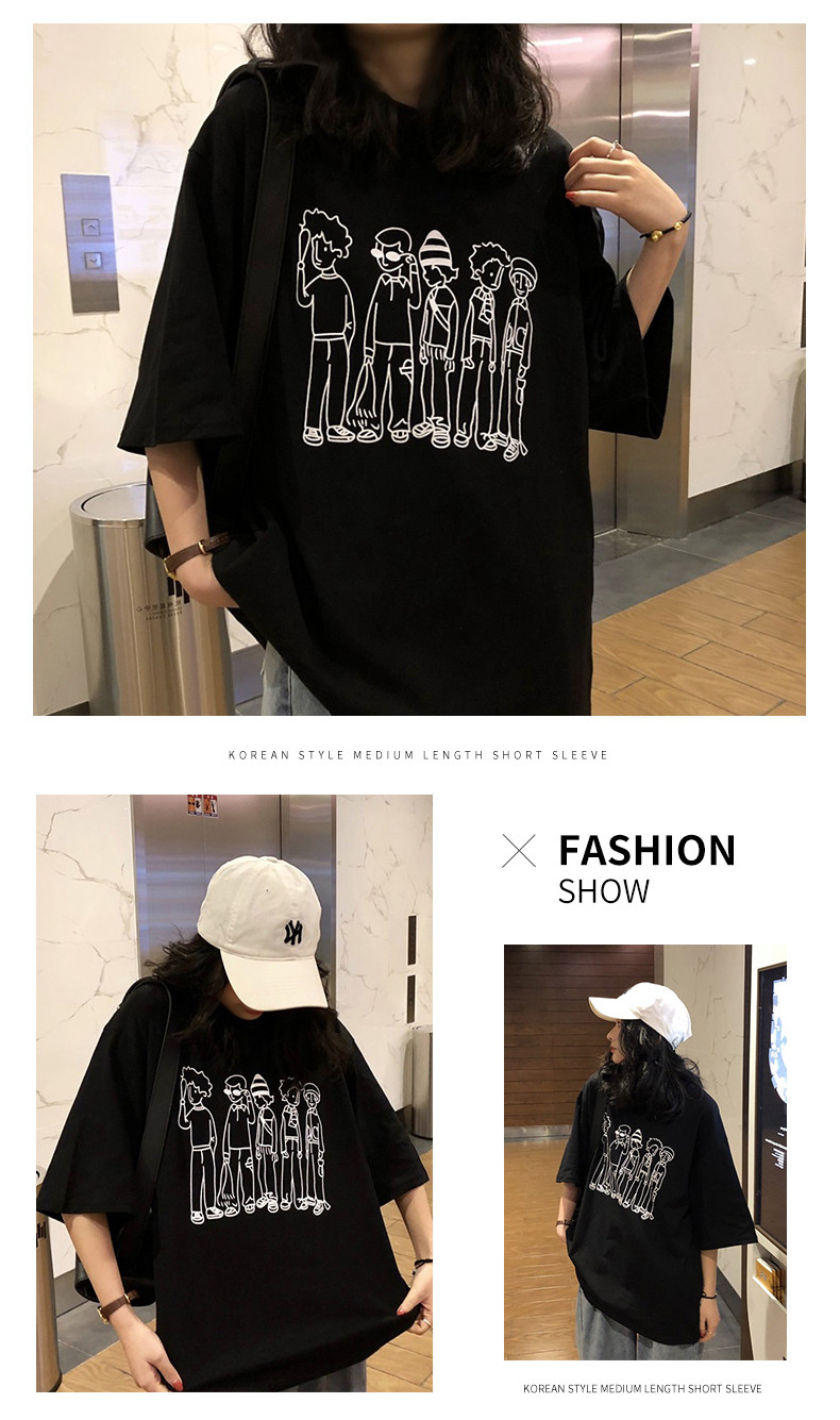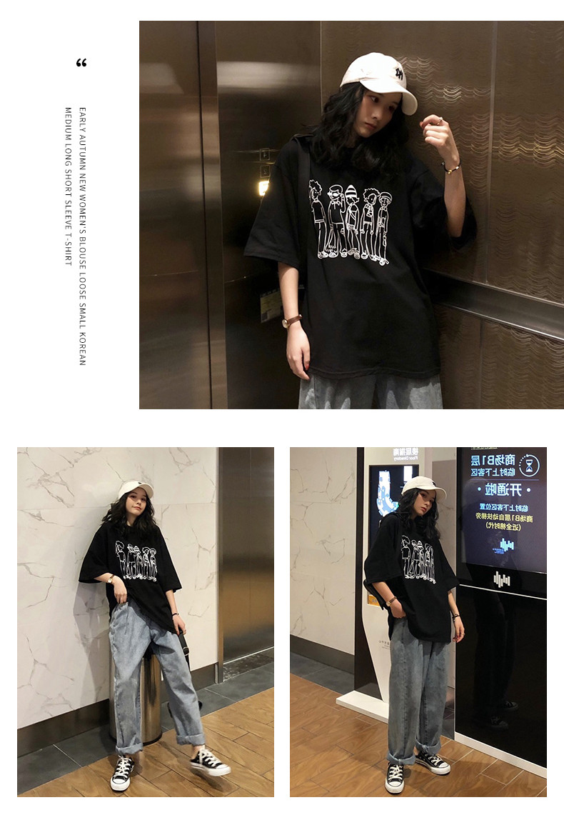 Ulzzang Dongdaemun Corean Short -sleeed T -Form Женская свободная корейская версия Harajuku bf wind mschf top