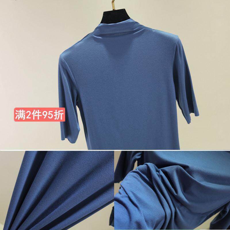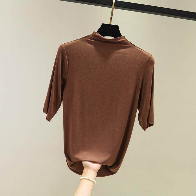 Тонкая приятная телу футболка, высокий воротник, большой размер, облегающий крой