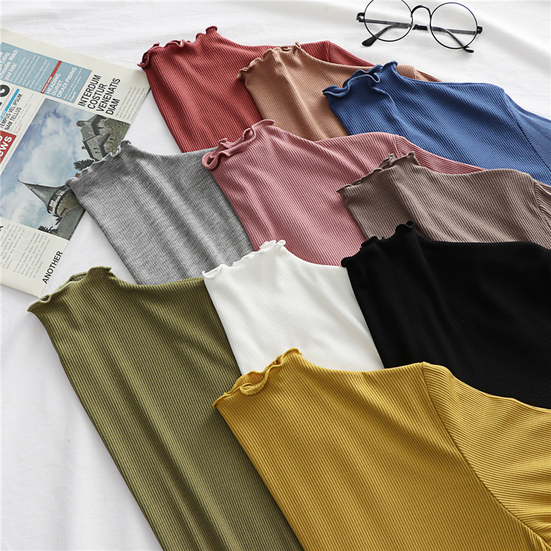 Весенний летний лонгслив, базовая приятная телу маска для лица, облегающий крой, в западном стиле, высокий воротник