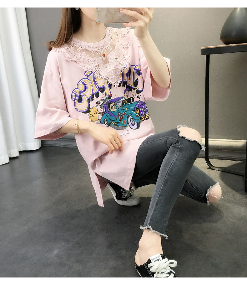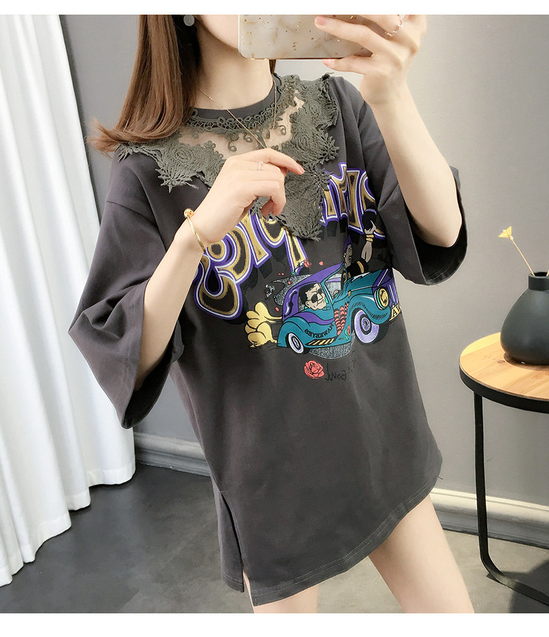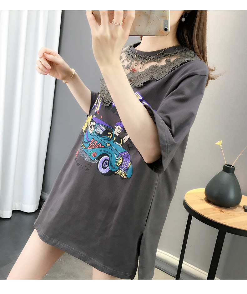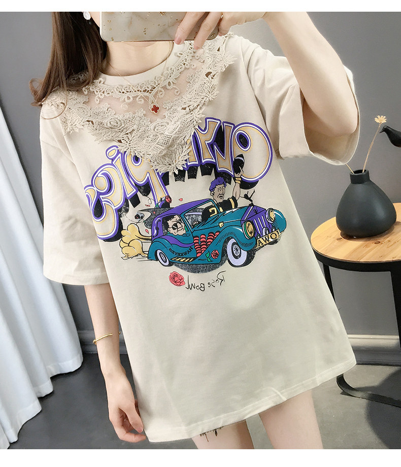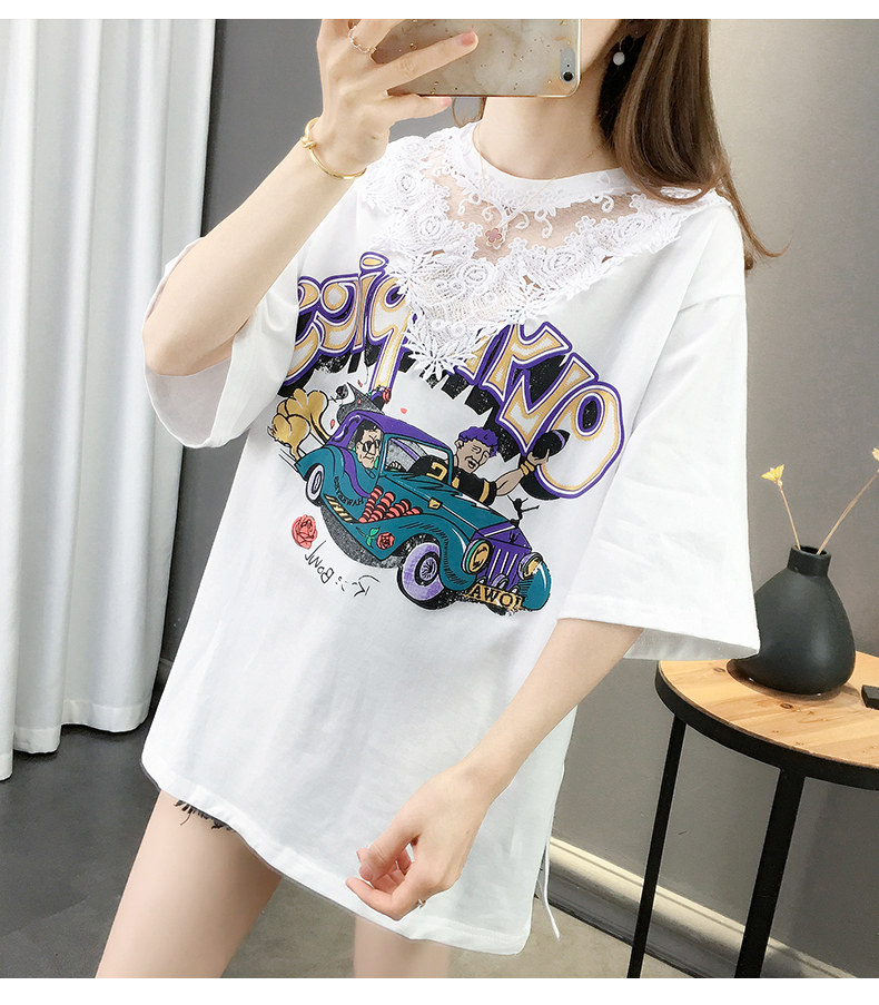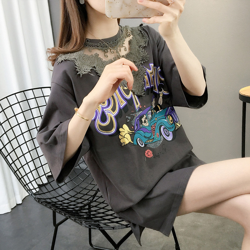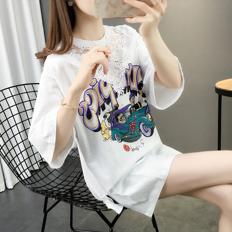 Tide, летняя длинная модная кружевная футболка с коротким рукавом, оверсайз, средней длины, в западном стиле