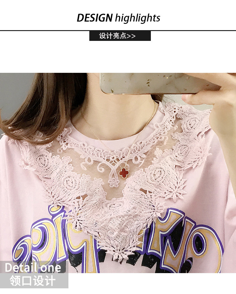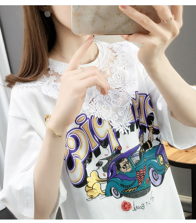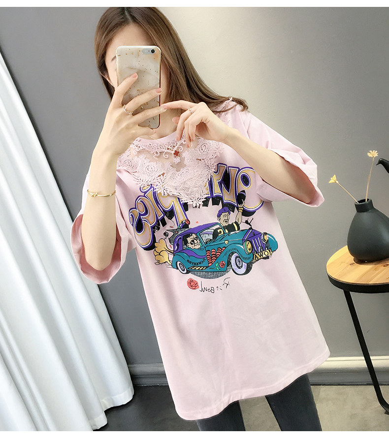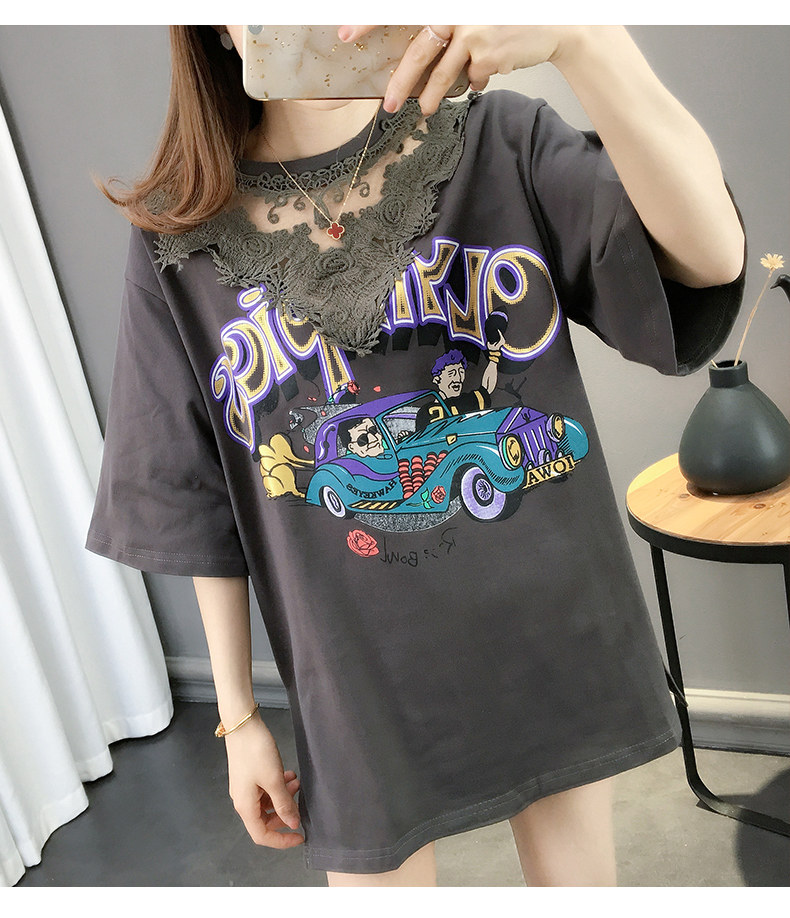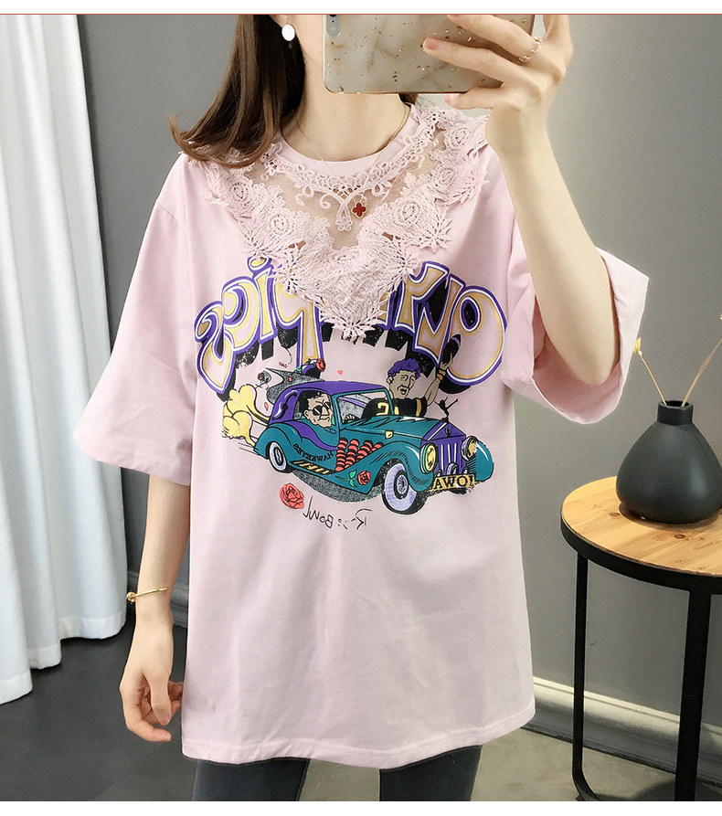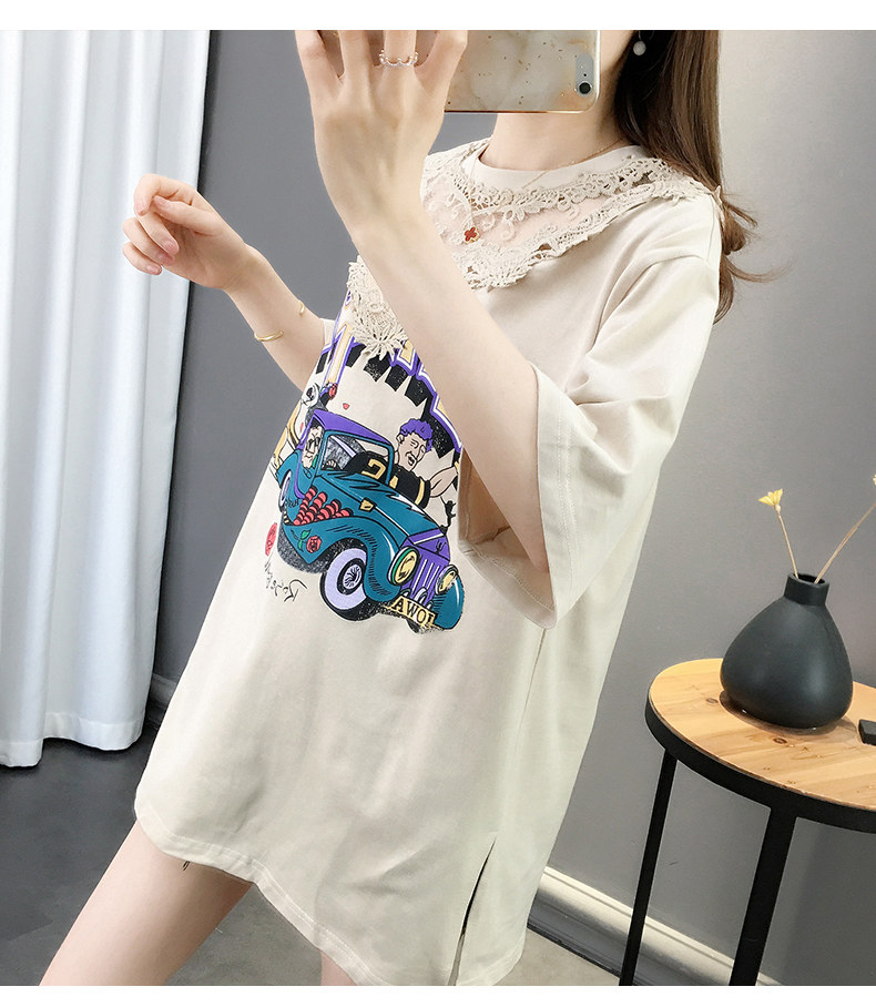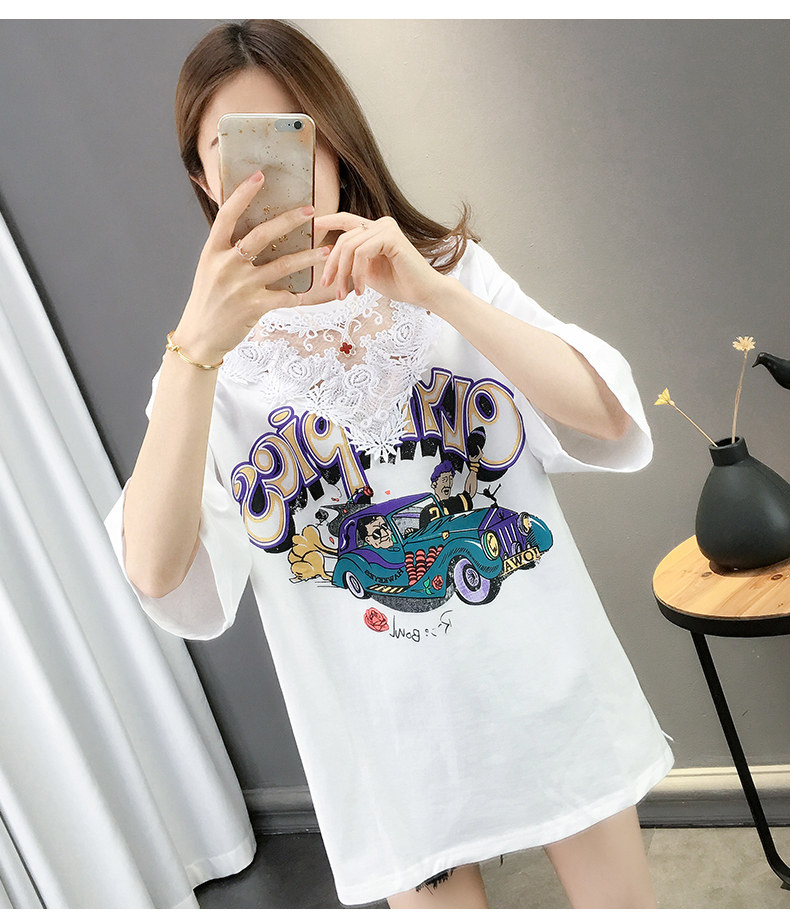 Tide, летняя длинная модная кружевная футболка с коротким рукавом, оверсайз, средней длины, в западном стиле