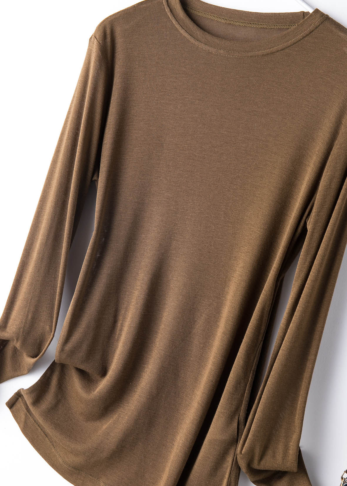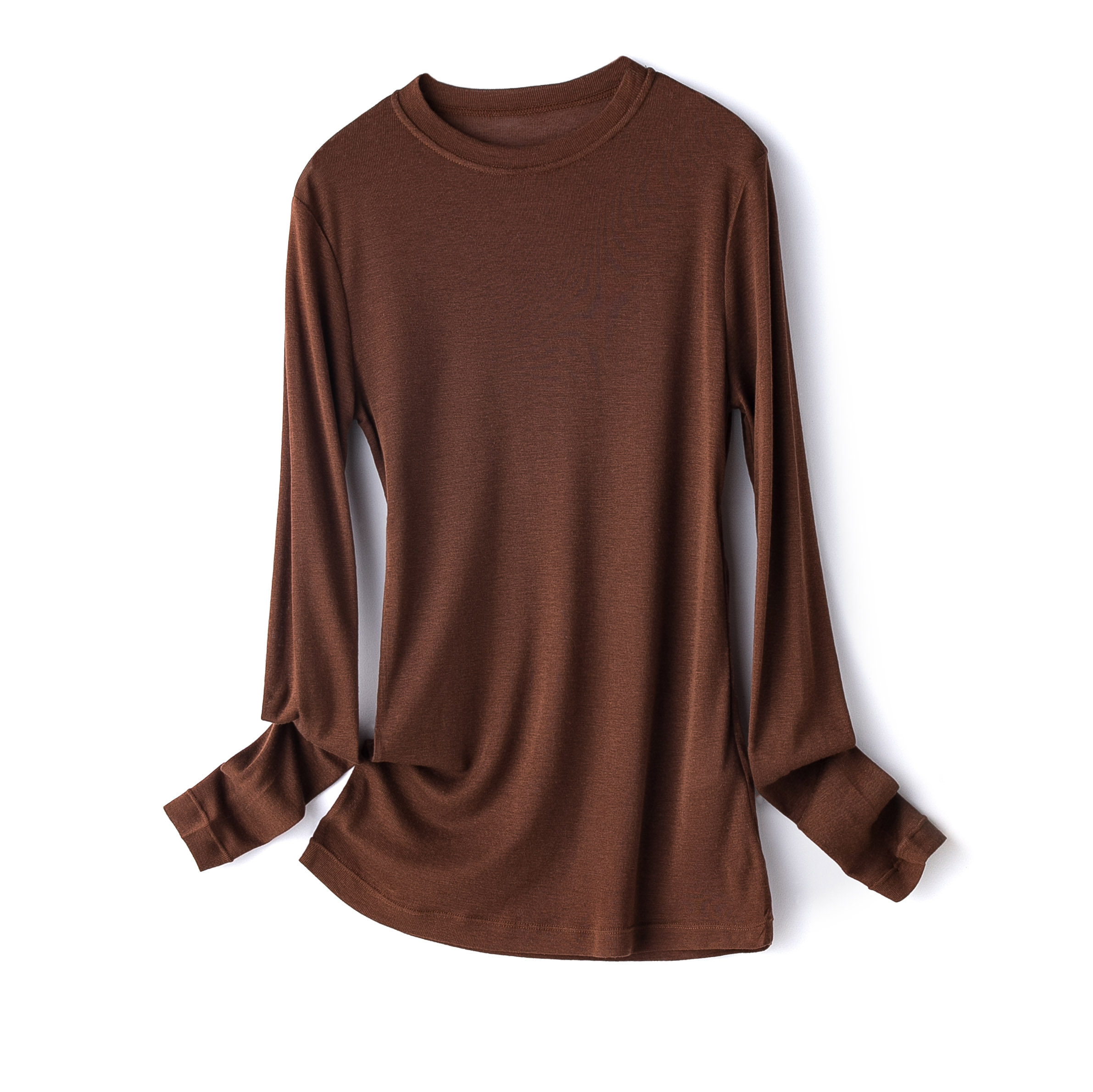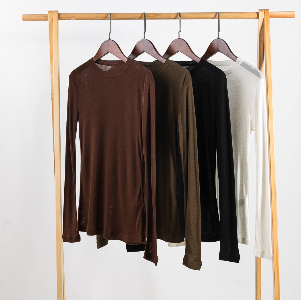 Шерстяной комфортный эластичный лонгслив с круглым воротником, базовая футболка