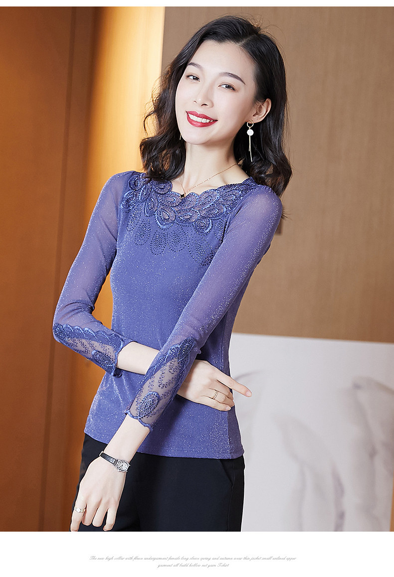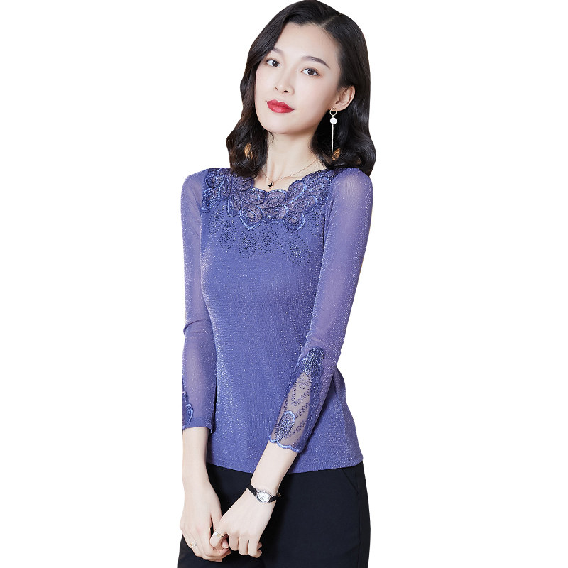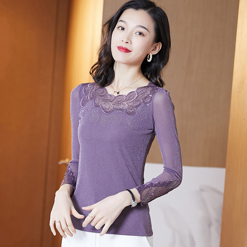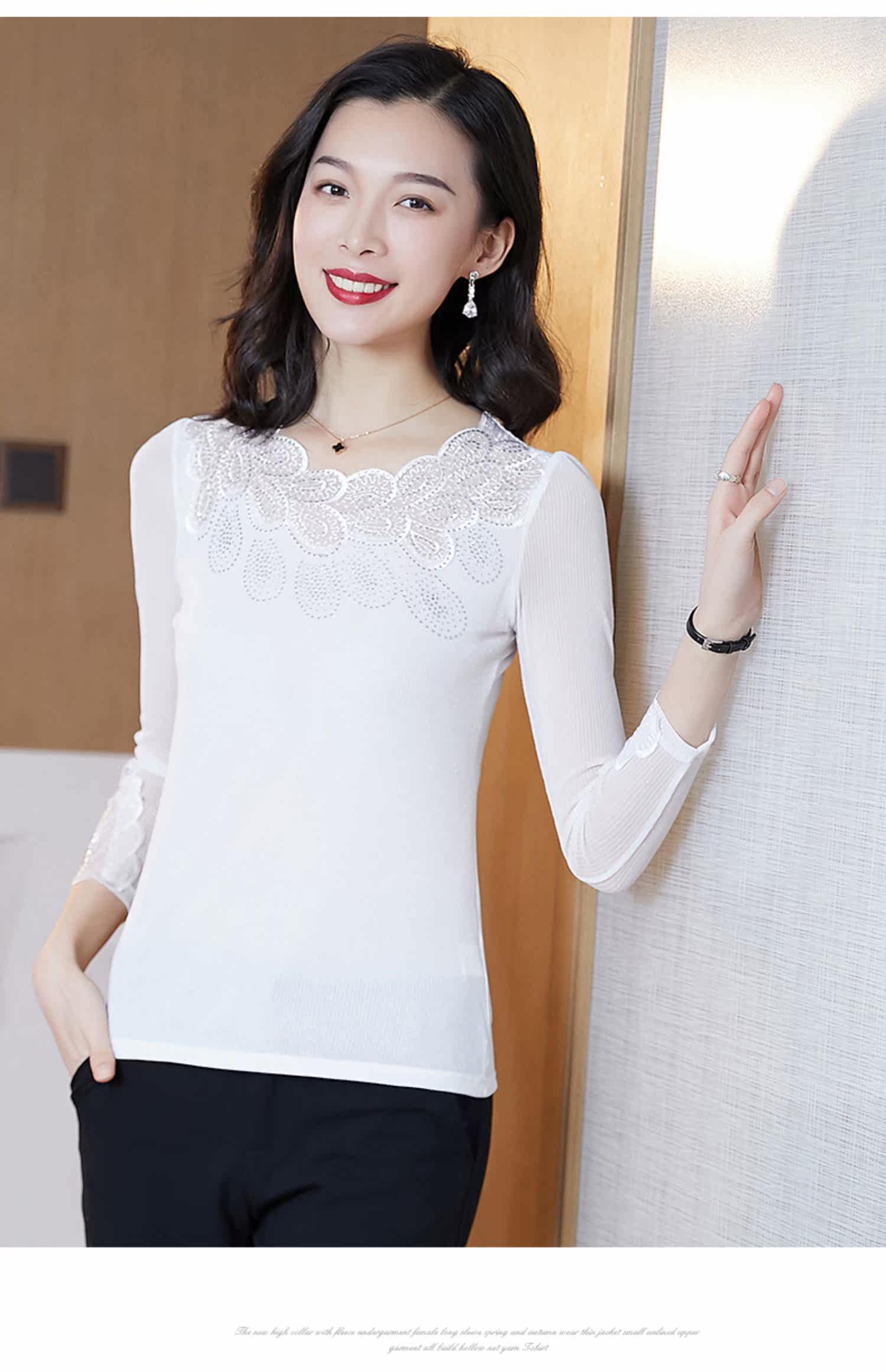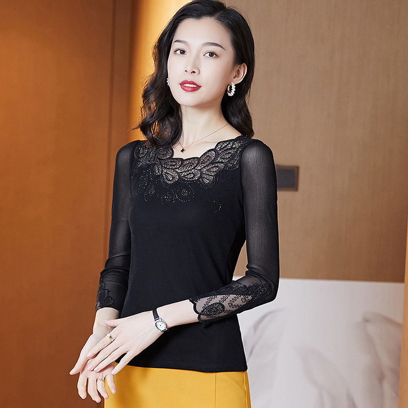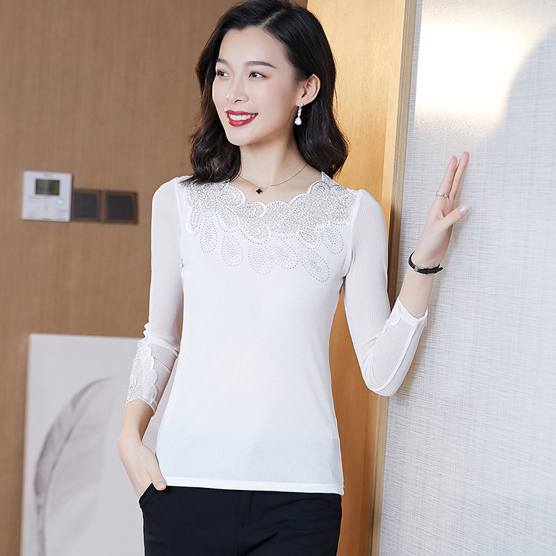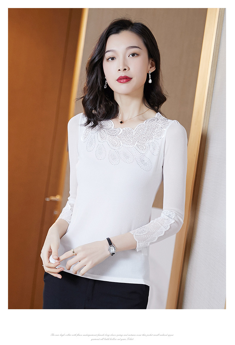 Кружевная шелковая приятная телу осенняя футболка, лонгслив, облегающий крой, в западном стиле