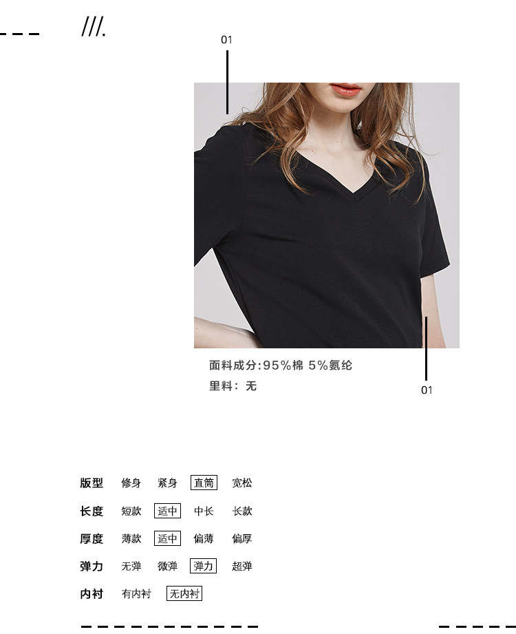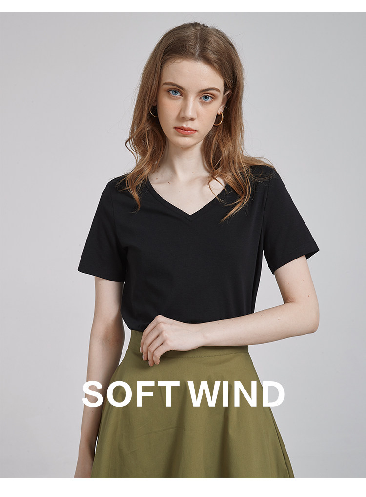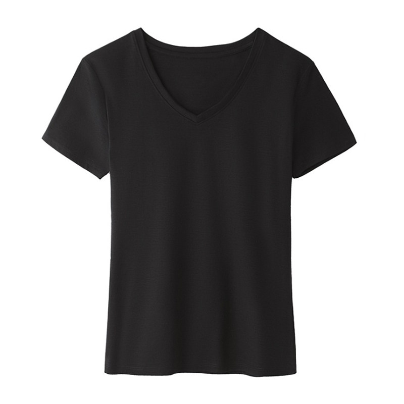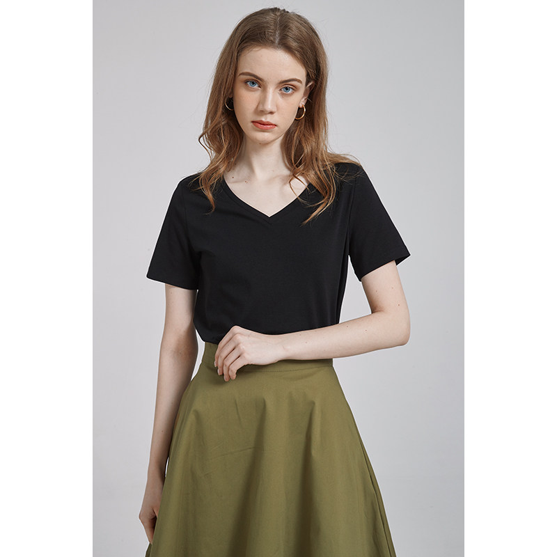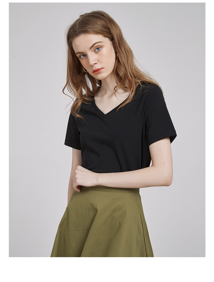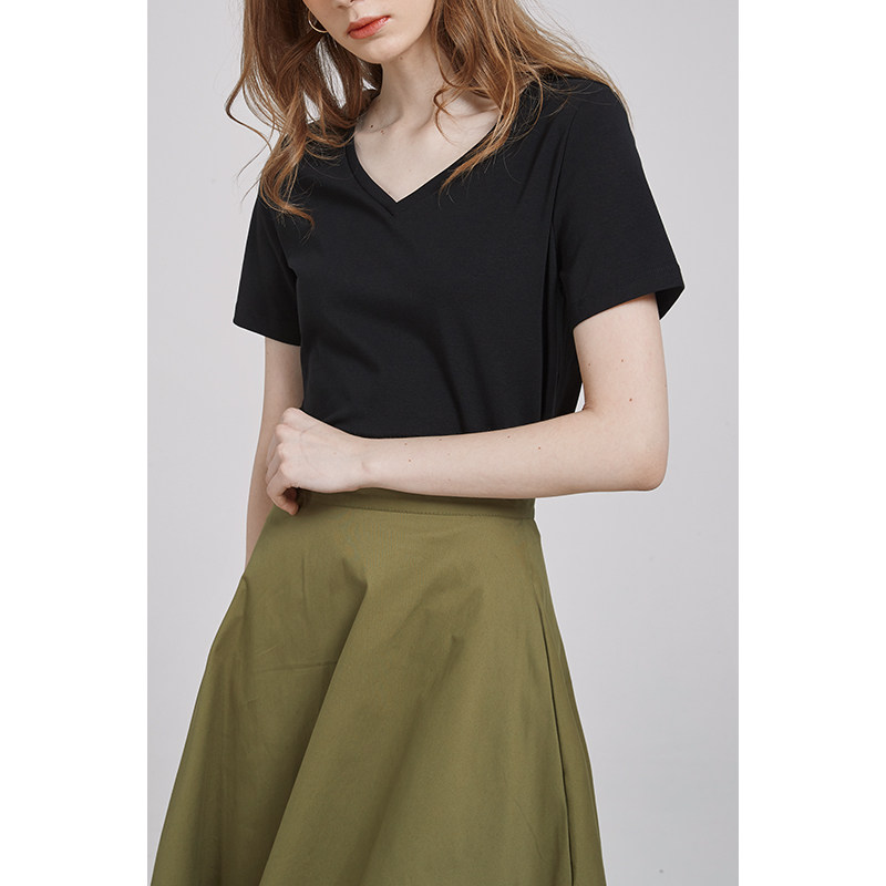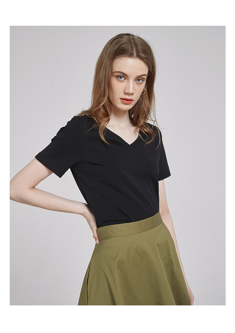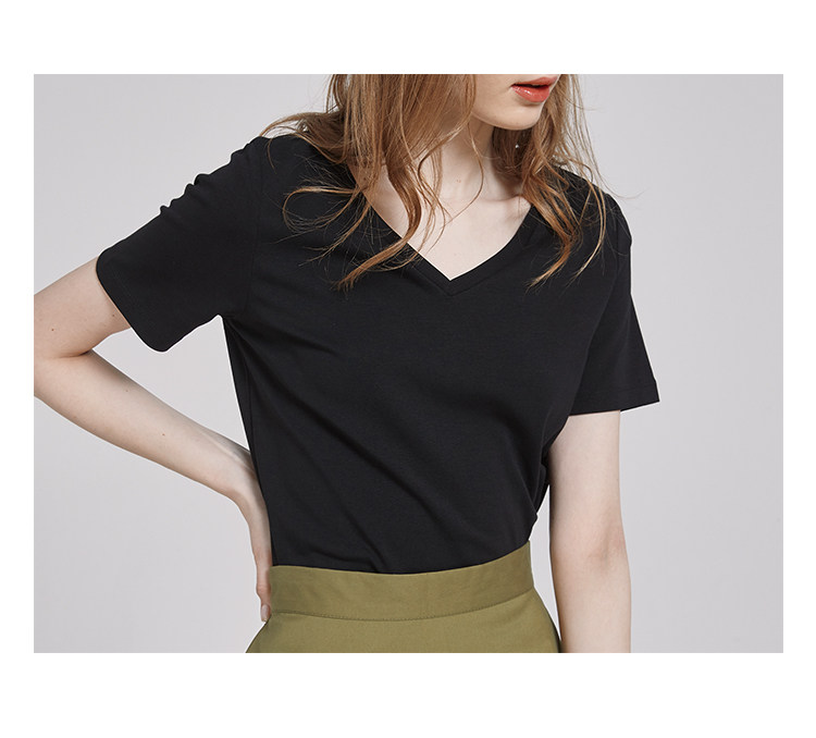 Летняя базовая черная летняя одежда, V-образный вырез, короткий рукав, по фигуре