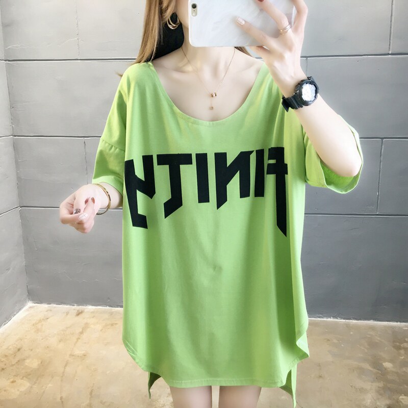 Футболка с коротким рукавом, большая летняя одежда, большой размер, в корейском стиле, оверсайз, свободный крой
