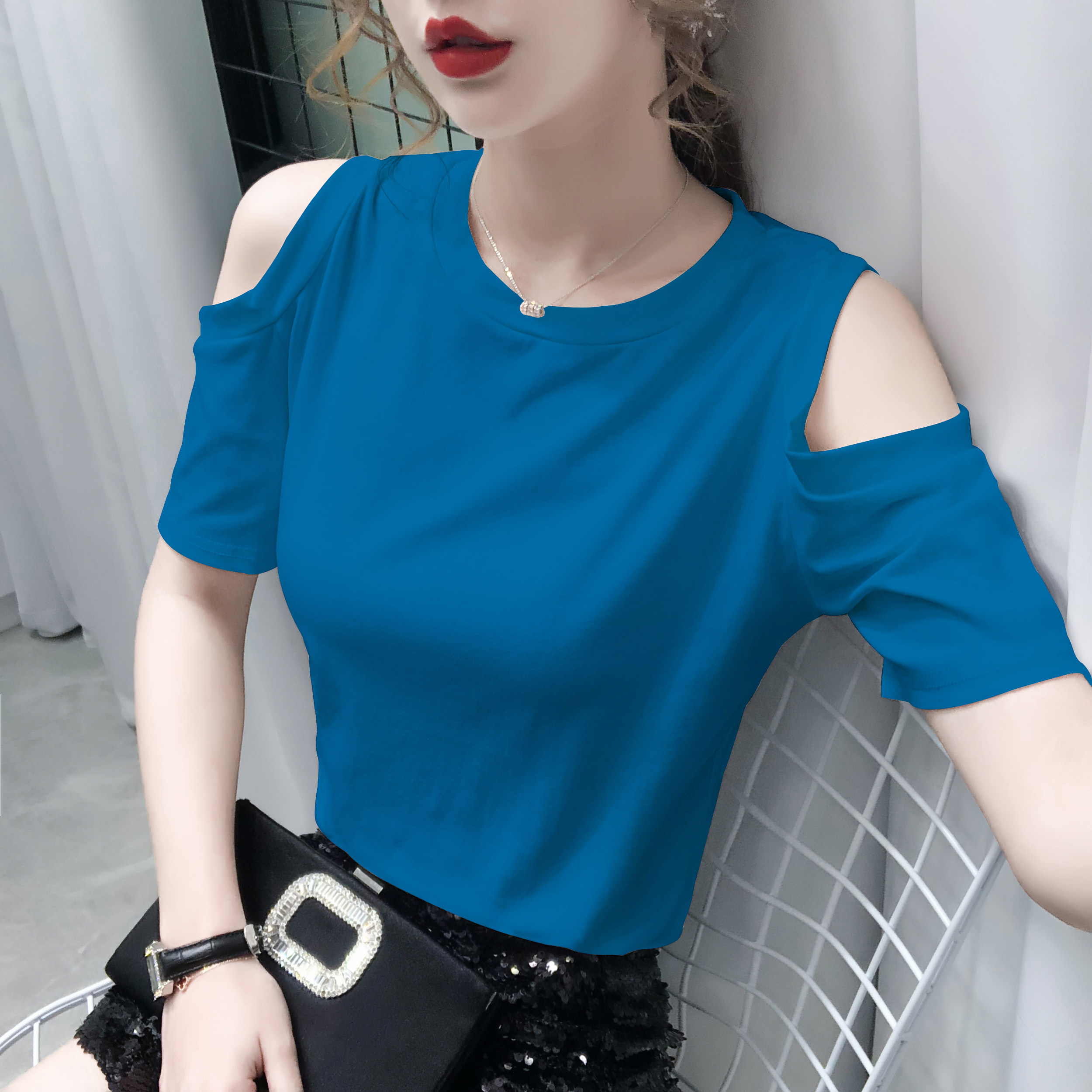 Летняя сексуальная футболка для отдыха, европейский стиль, короткий рукав, 2024 года