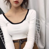 Хлопковый черный лонгслив, тонкая осенняя футболка, термобелье, облегающий крой