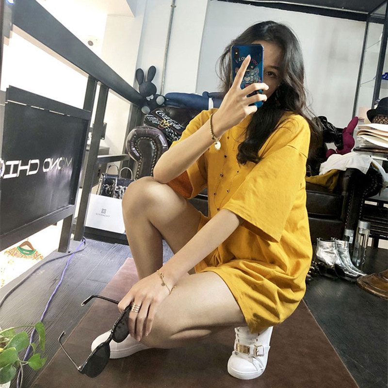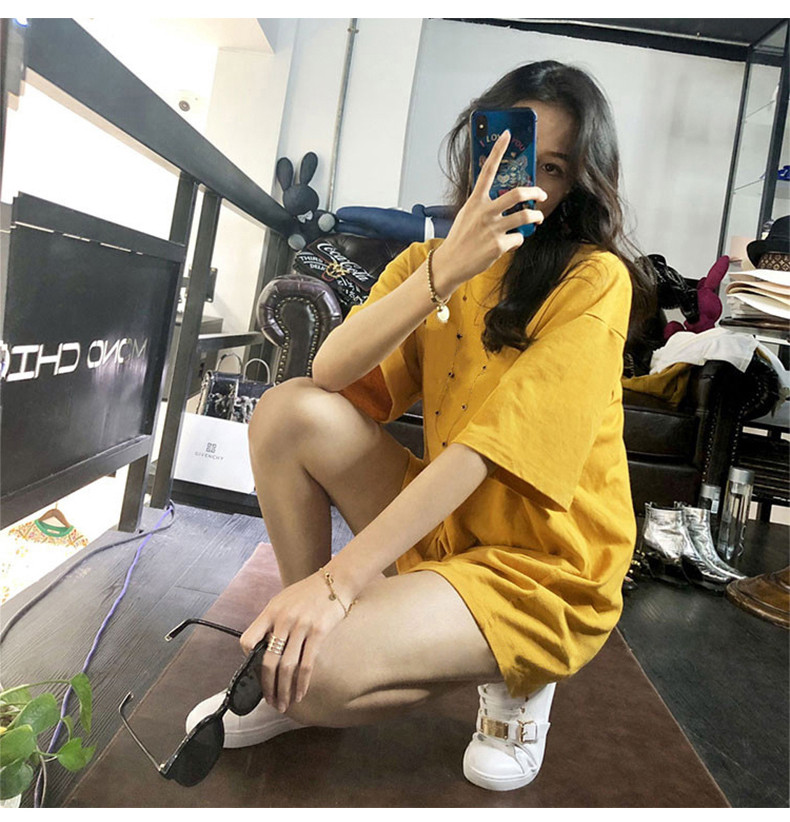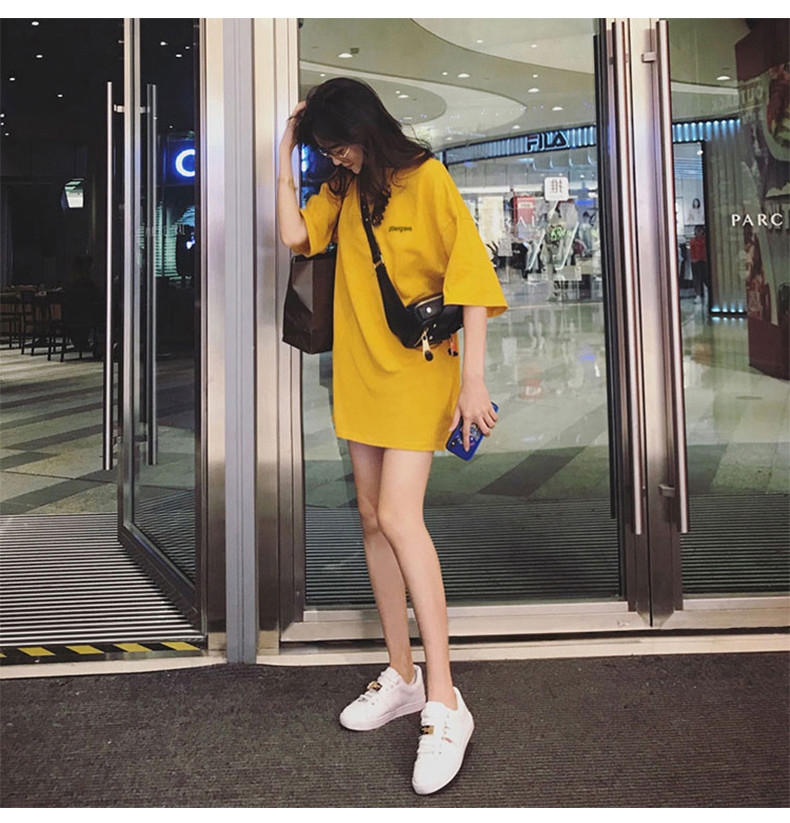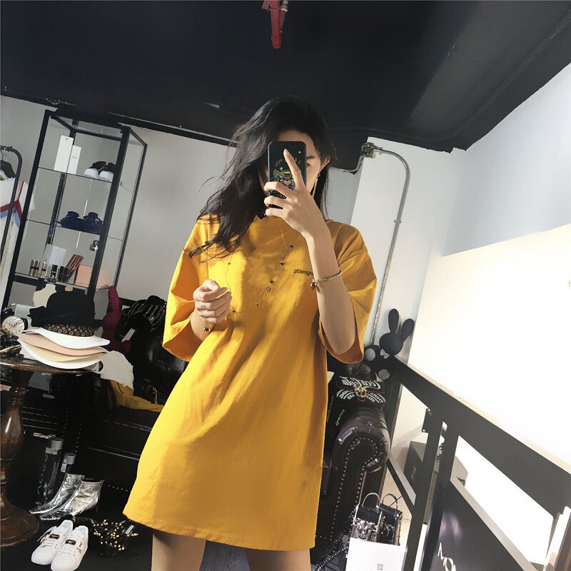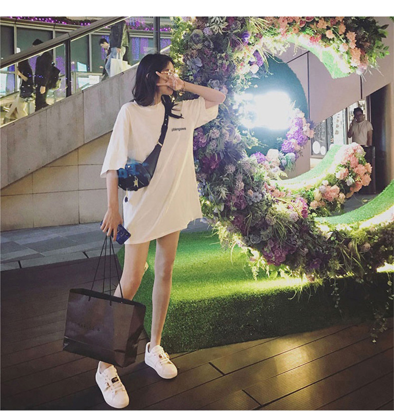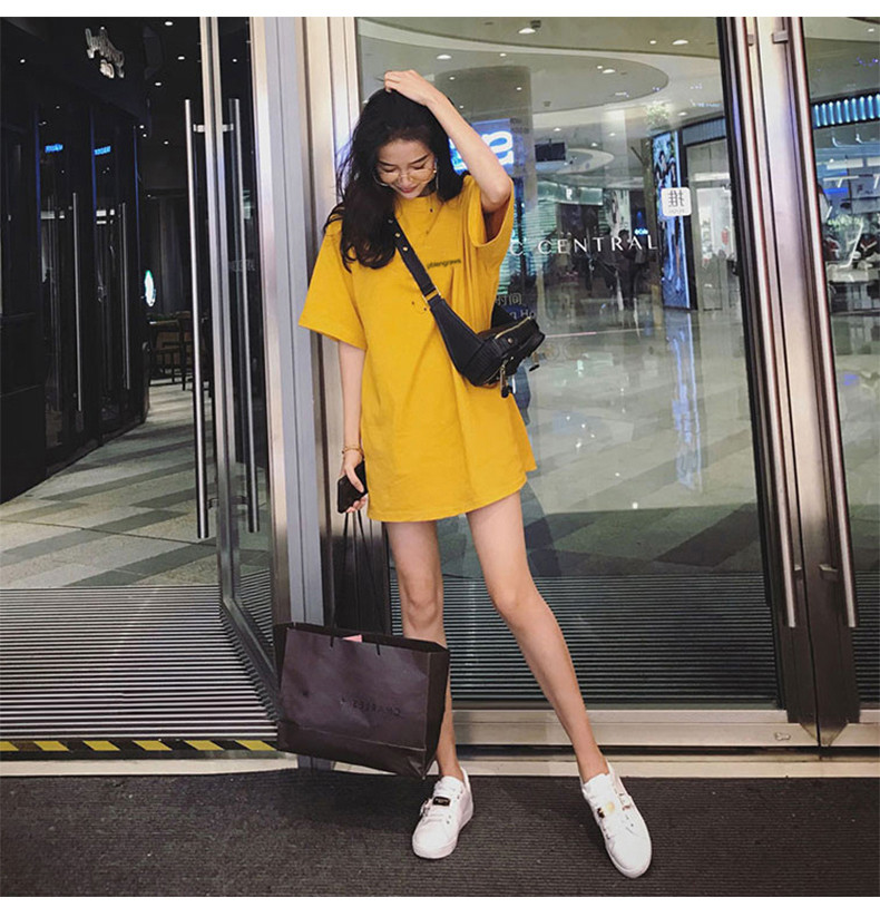 Tide, длинная модная футболка с коротким рукавом, средней длины, коллекция 2021, свободный крой