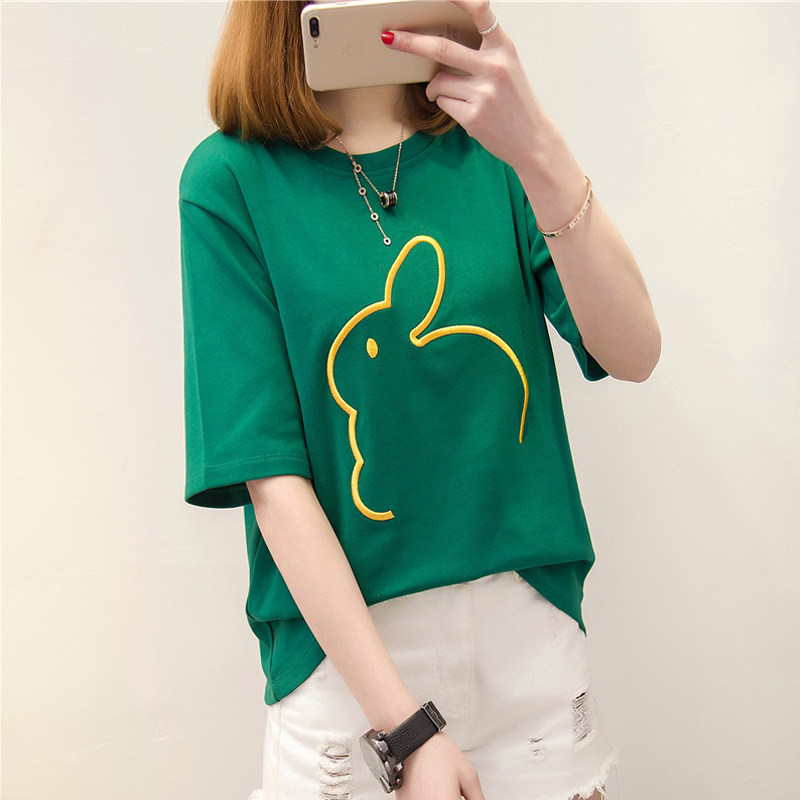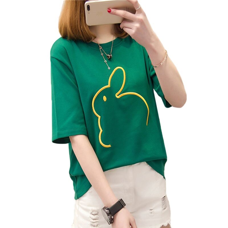 Мультяшная брендовая футболка, коллекция 2021, в корейском стиле, свободный крой, с вышивкой, короткий рукав